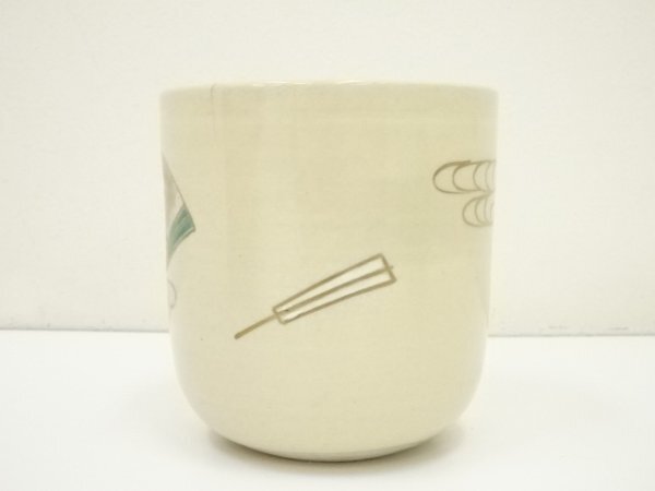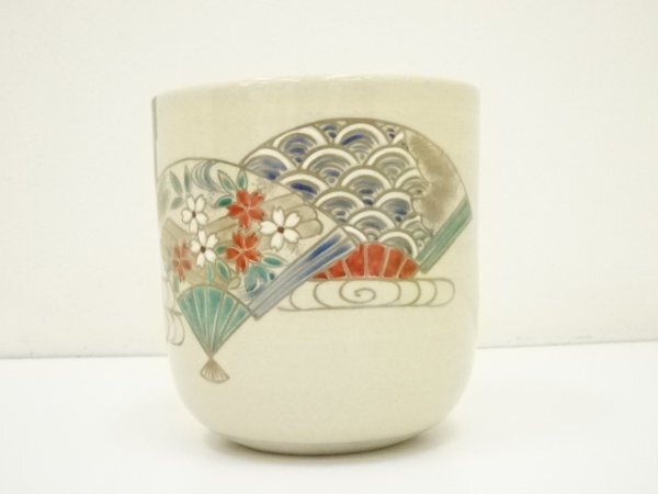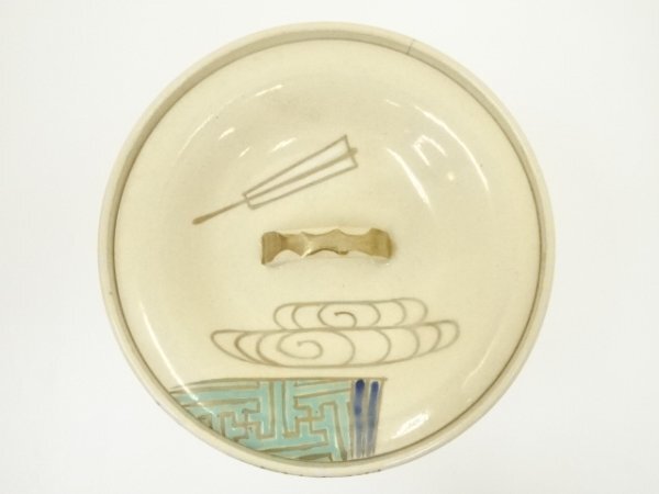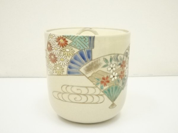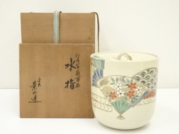 ys7407317; 京焼 加藤景山造 仁清写扇面画水指(共箱)【道】