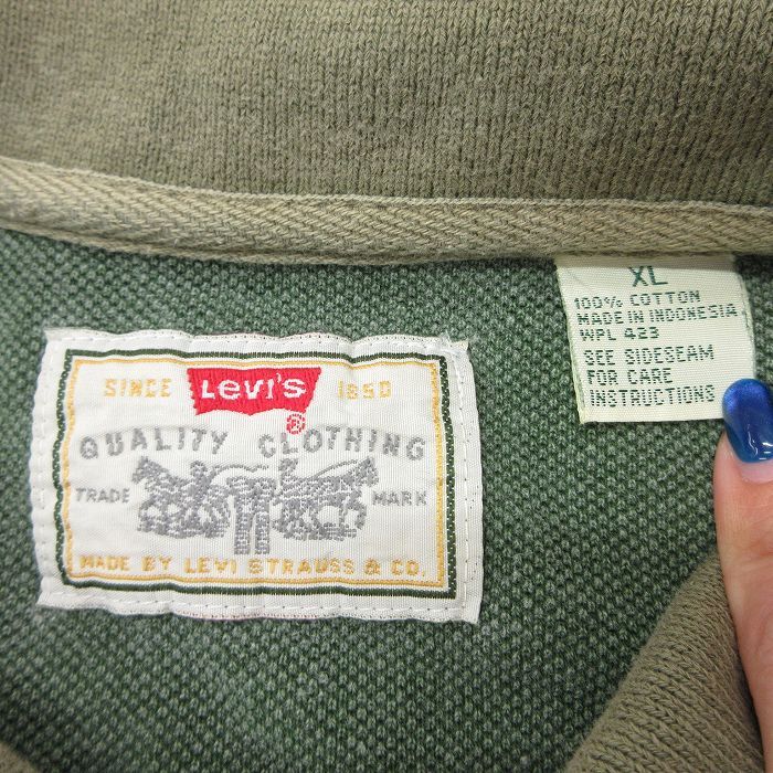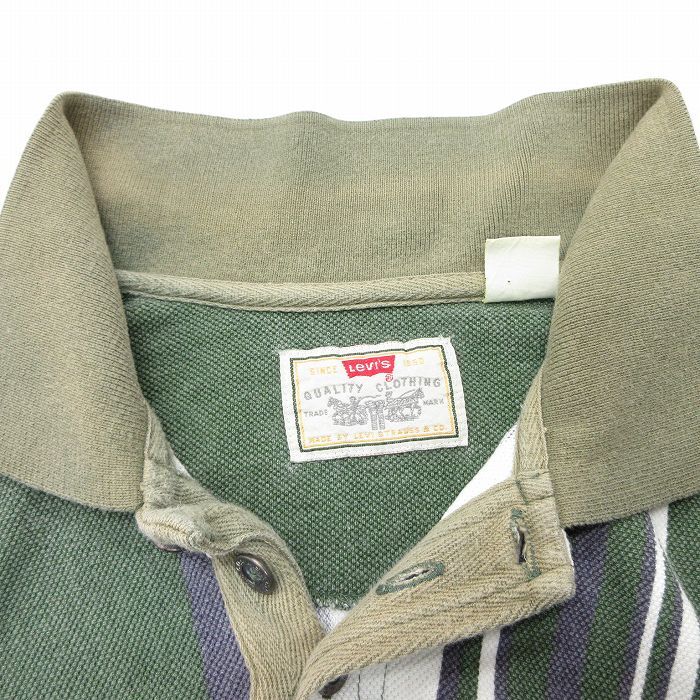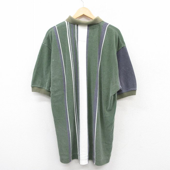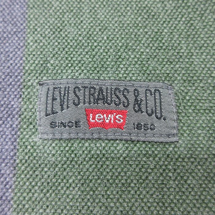 【商品名】 XL★古着 リーバイス Levis 半袖 ブランド ポロ シャツ メンズ 90年代 90s 鹿の子 大きいサイズ コットン 緑他 ストライプ
