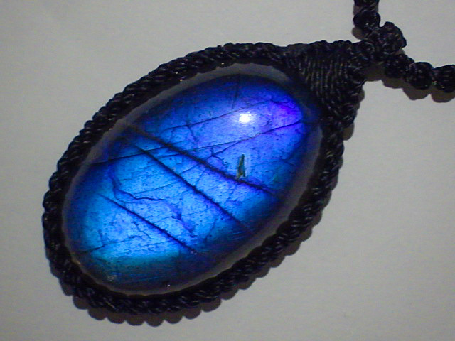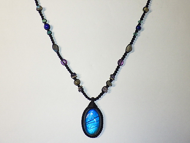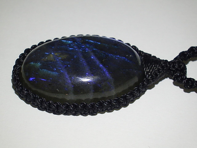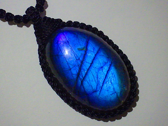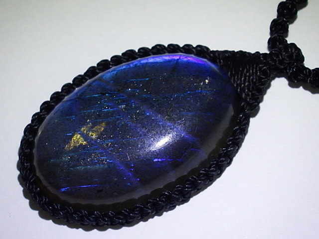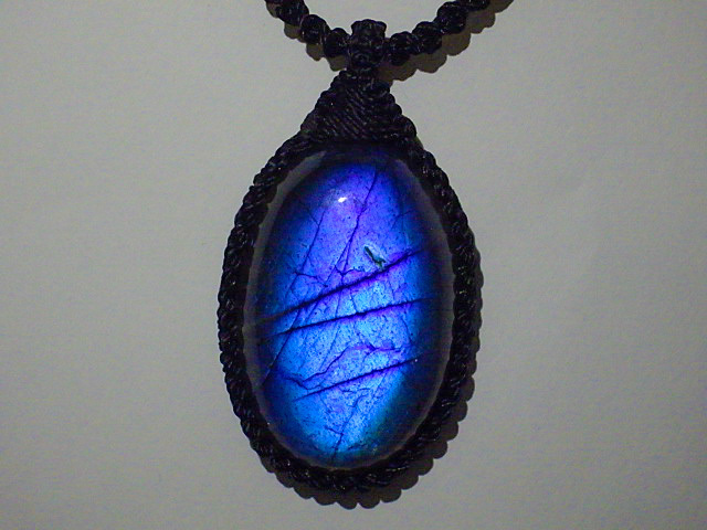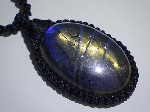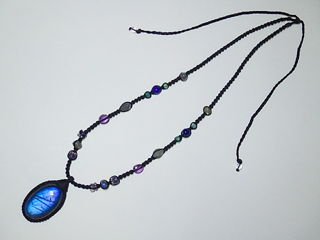★神秘のディープブルーラブラドライト★57ct★天然石ハンドメイドネックレスペンダント★マクラメ編み★男女兼用フリーサイズ★