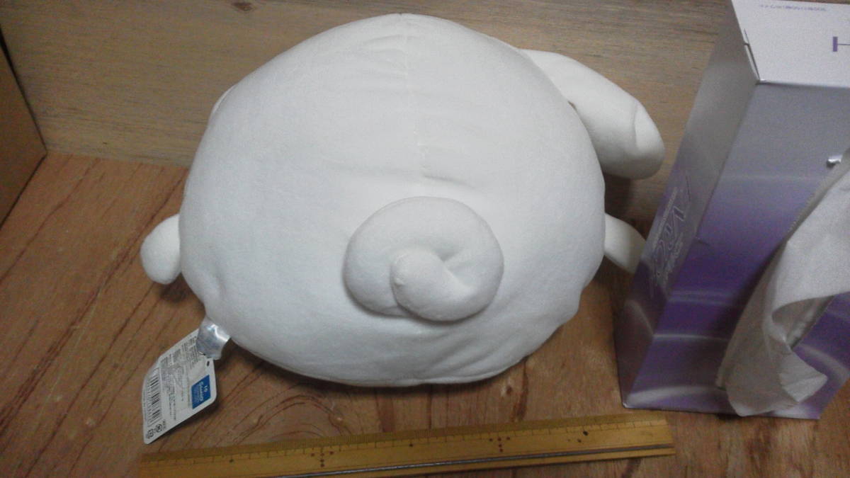 新品タグ有でございます。生地がマシュマロでございます。顔が良く伸びます。かわいいです。汚れが付きやすいので、なるべく袋を2重にしてぬいぐるみの倉庫の中に保管しております。