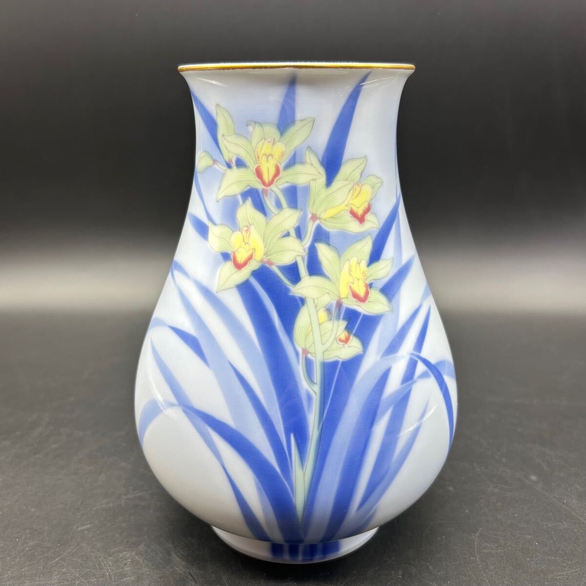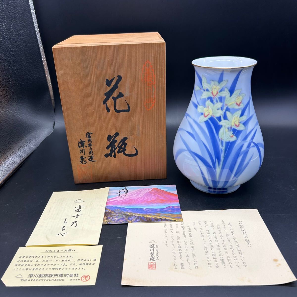 深川製磁 菖蒲 官窯染付 花瓶 花器 花入 フラワーベース インテリア ヒ3