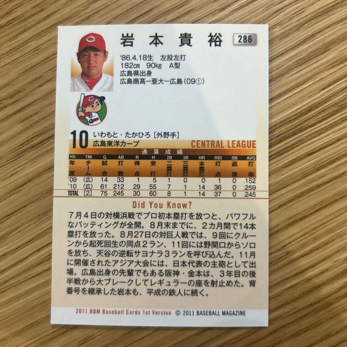 2011BBM 1st 286 岩本貴裕 銀箔サインパラレル 広島カープ