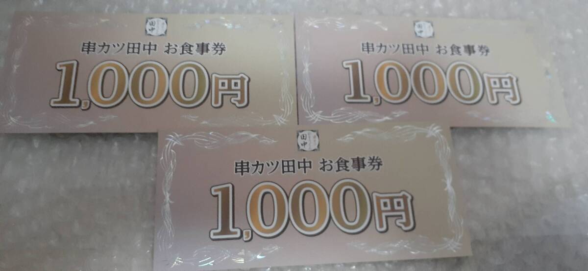 ★串カツ田中 お食事券3000円分(1000円x3枚) 串カツ田中でご利用可能です、その他注意事項は2枚目の画像にてご確認ください 有効期限2025/12末日 ※評価の悪い方、新規の方はトラブル防止の為に入札されても入札を削除することがございますのでご了承くださいませ | |