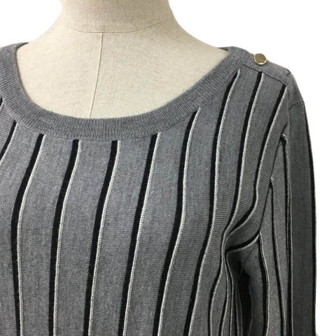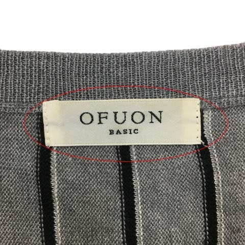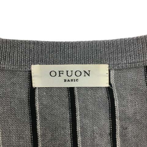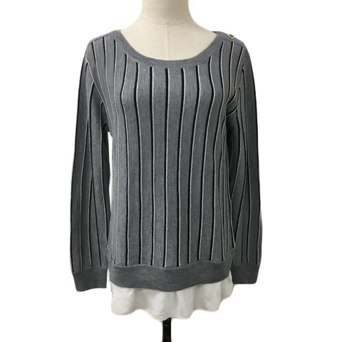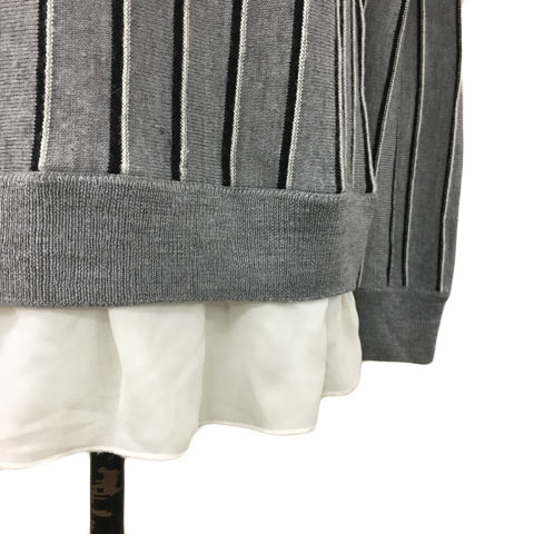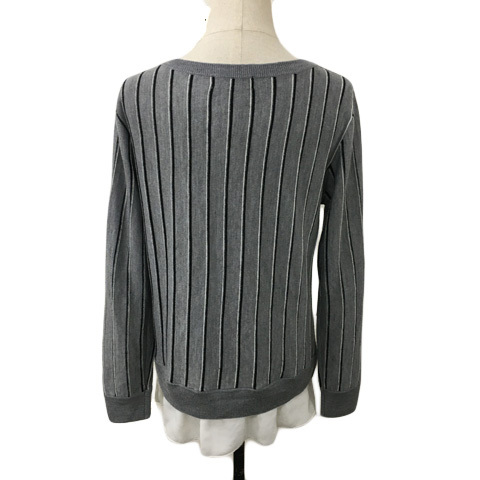 オフオン ofuon カットソー ニット プルオーバー ラウンドネック ストライプ 切替 シフォン 長袖 40 グレー 黒 ブラック レディース
