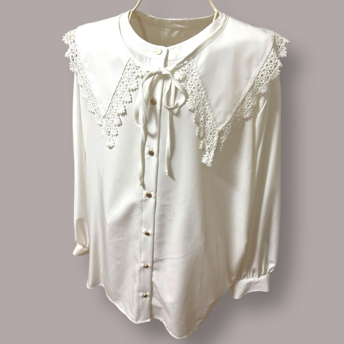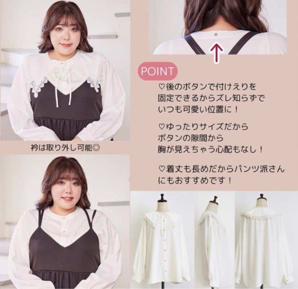 KannaさんプロデュースLAPOCIAのブラウスです。襟は取り外し可能でシンプルブラウスとしても使え、襟は別のトツプスにもつけられます。