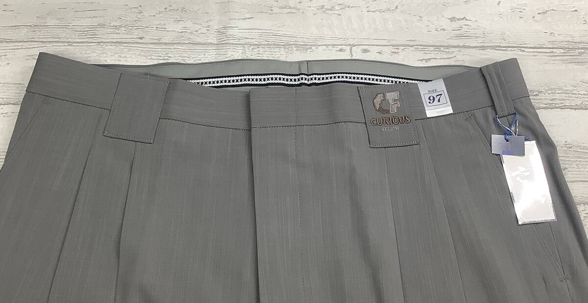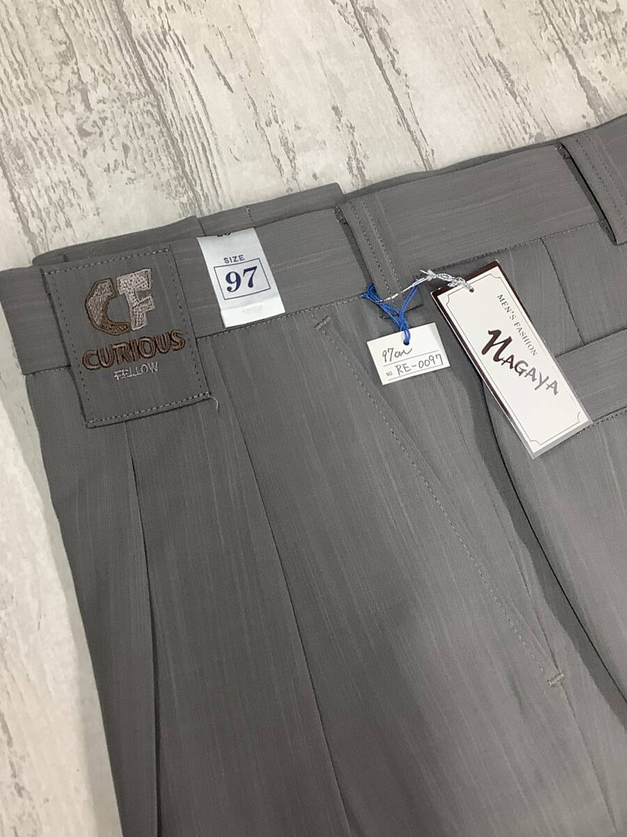 新品★ウエスト97cm ★ グレー?ベージュ?っぽい無地感スラックス ★ポリエステル100% ツータック スラックス★