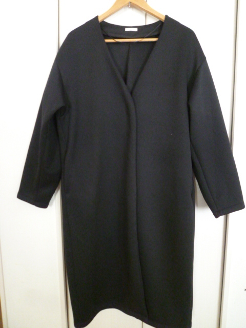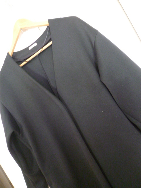 GU/ジーシュー◇黒段ボール素材風ポンチガウンコートロングカーディガンLブラックダイバー素材◇S716