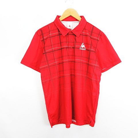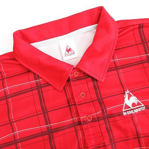 ルコックスポルティフ le coq sportif ポロシャツ 半袖 チェック L レッド スポーツウェア ※EKM メンズ
