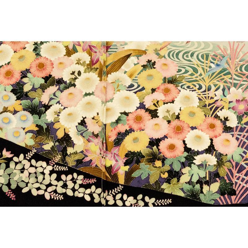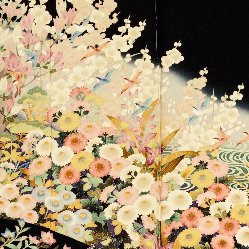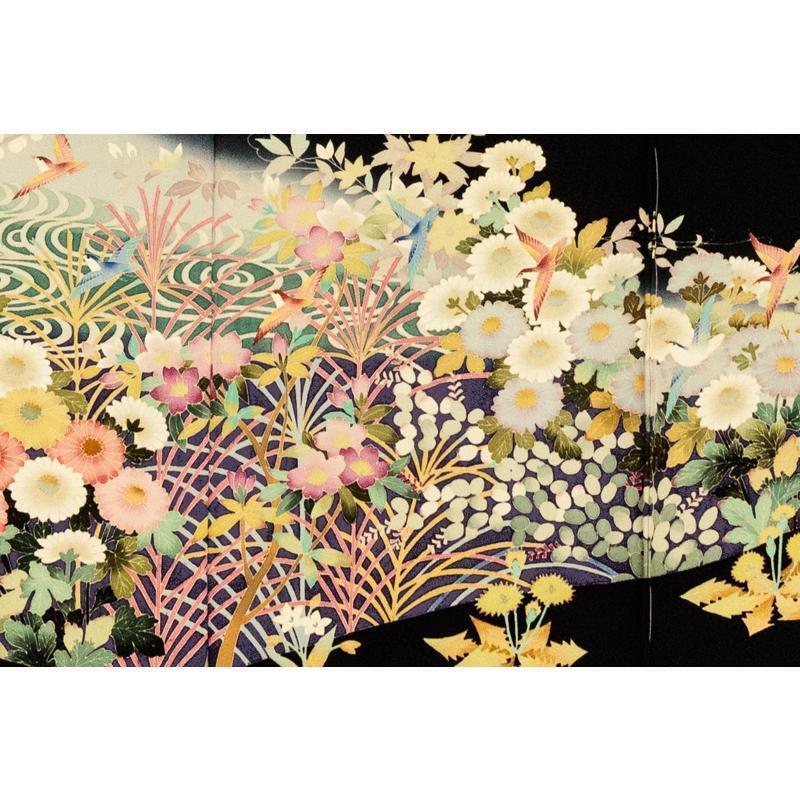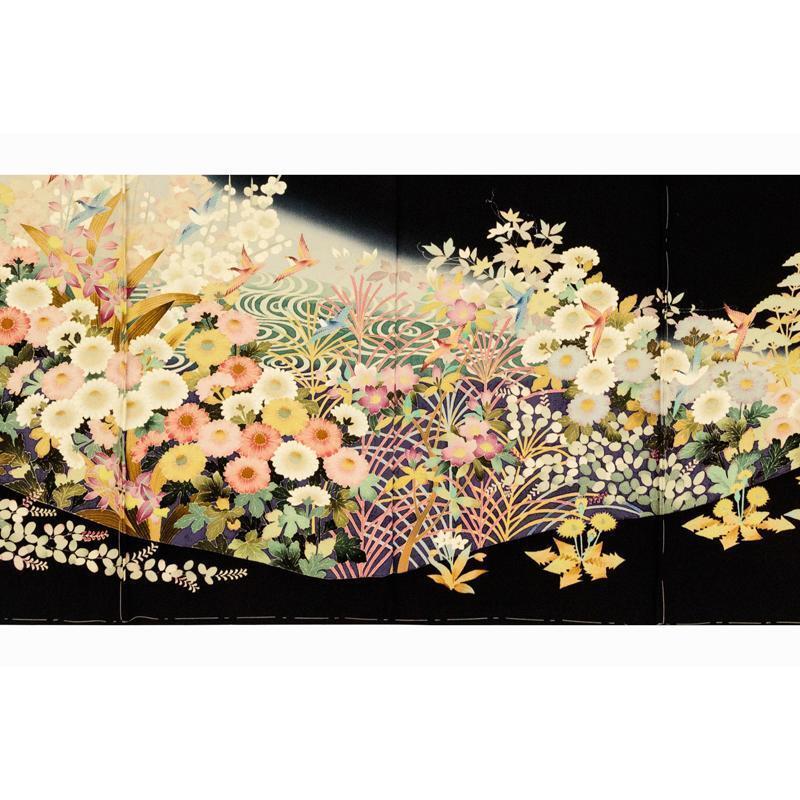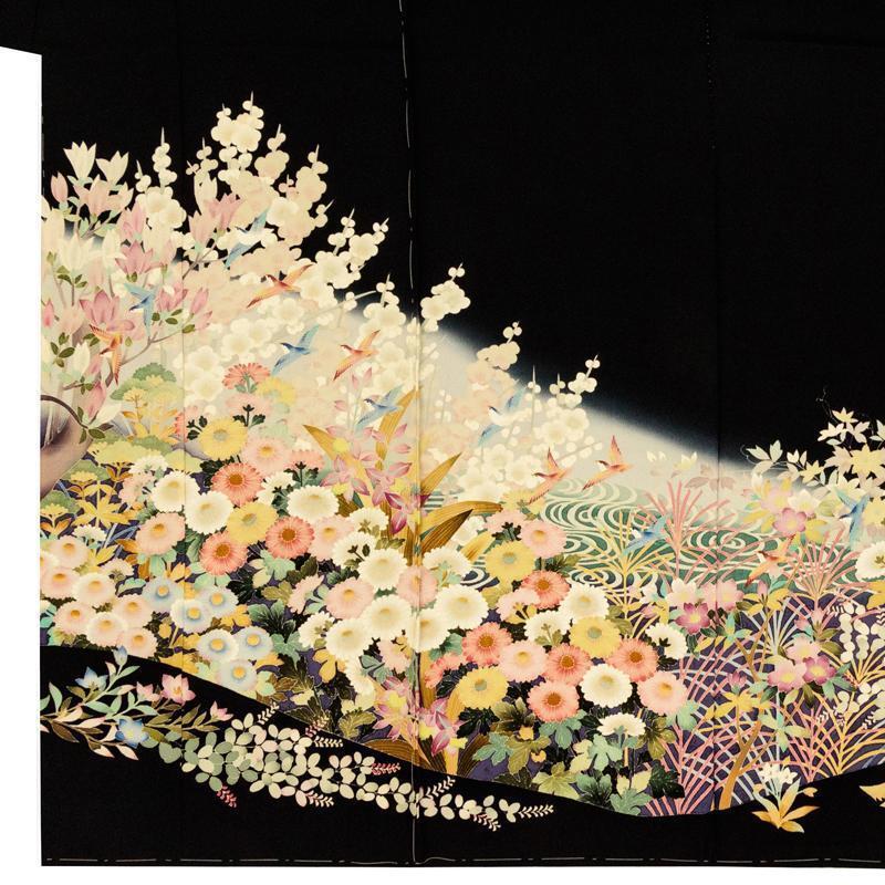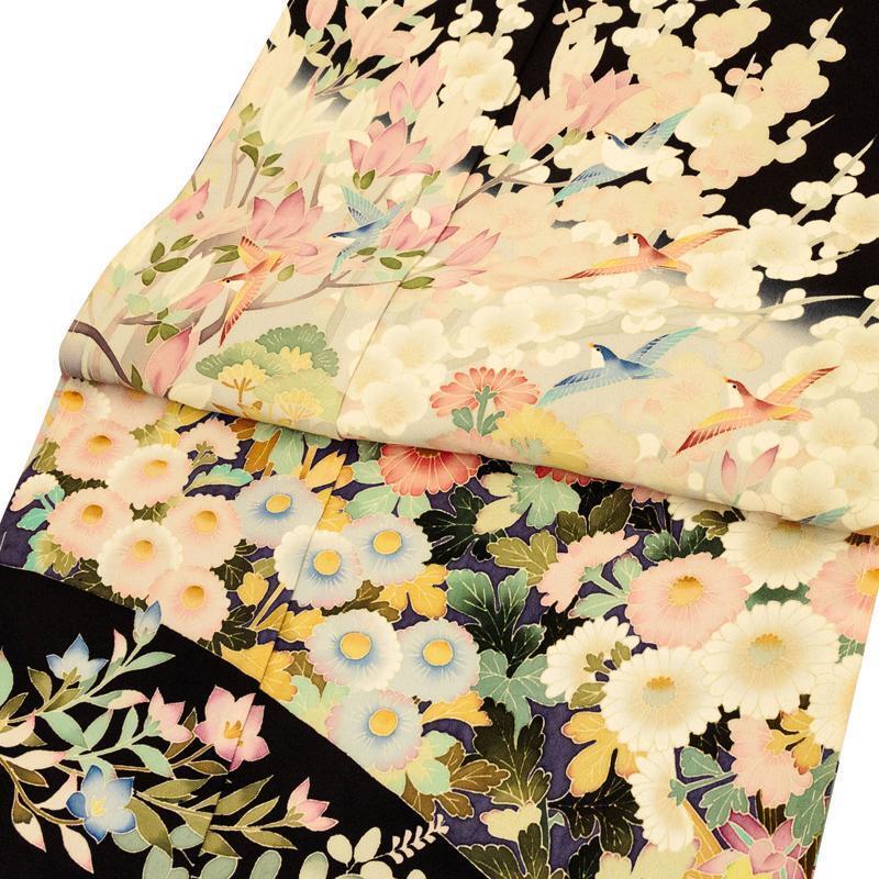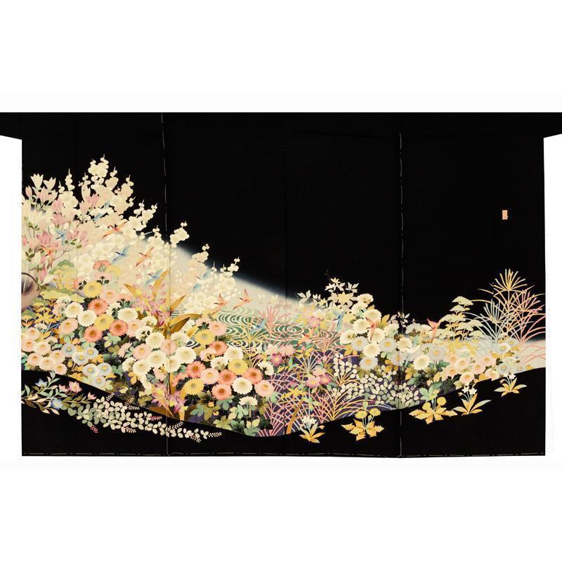 | ※記念感謝祭【仕立無料】本加賀友禅伝統的工芸品手描き美術加賀五彩染☆花鳥風月四季花文特撰黒留袖直江良三先生作 |