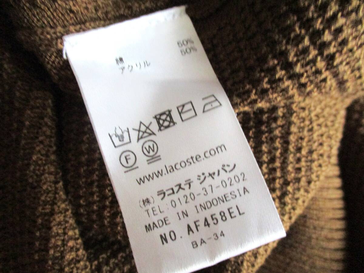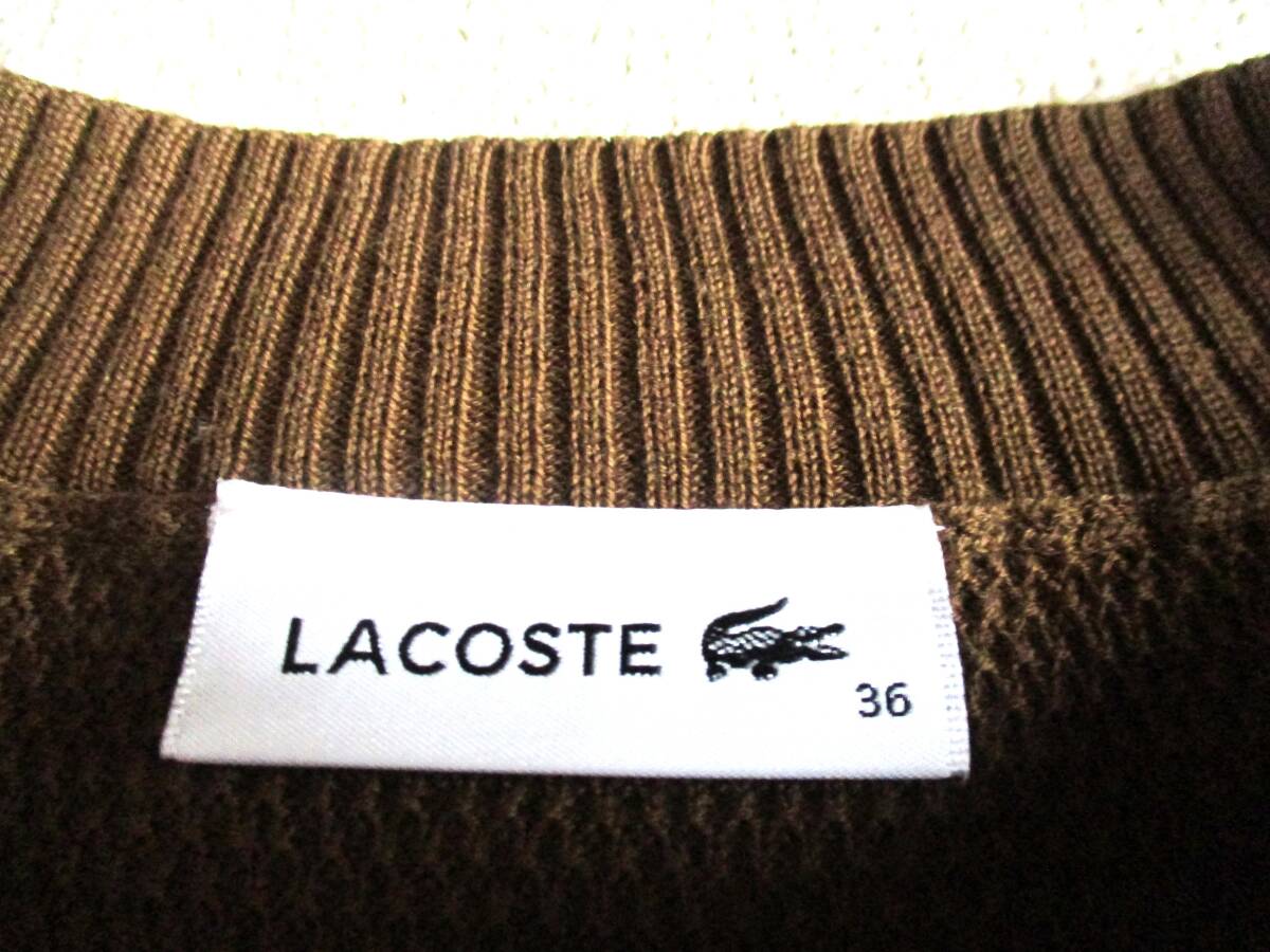 ブラウン★ 36 ラコステ★ コットンニットシャツ★ カットソー 茶 ゆったりシルエット ドロップショルダー