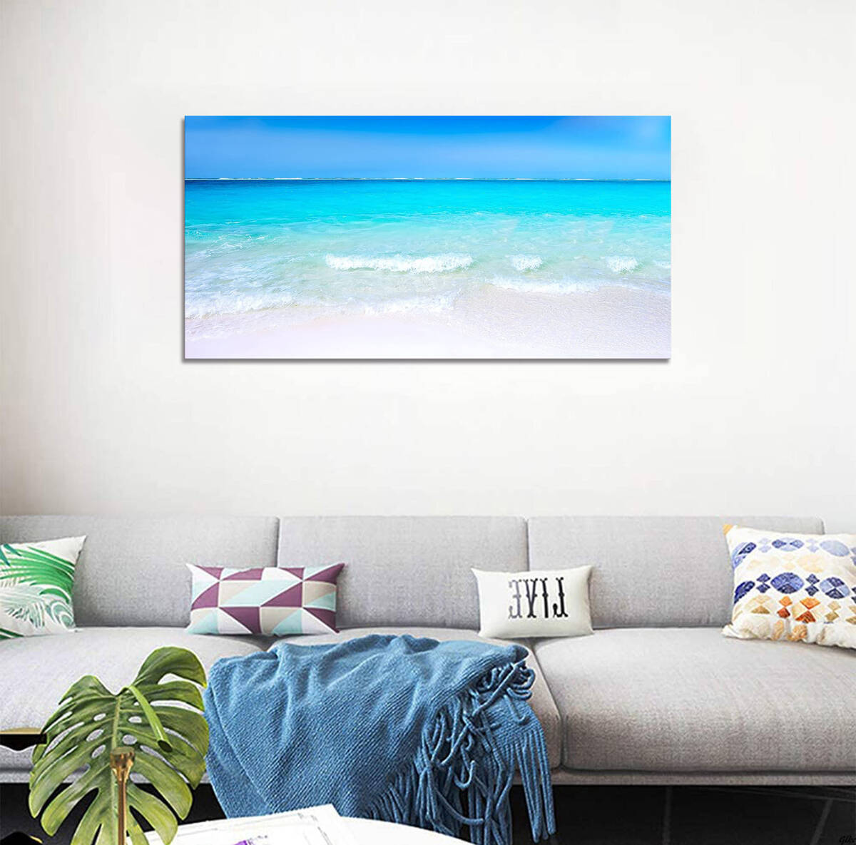 玄関やリビングを明るく飾りたい方、海の風景が好きで癒されたい方に最適です。