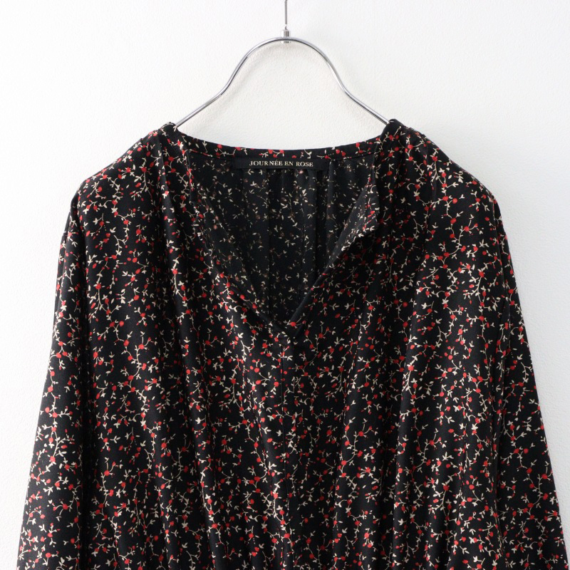 ジュルネアンローズ JOURNEE EN ROSE フラワープリント スキッパー ワンピース /ブラック トップス ドレス【2400014459838】