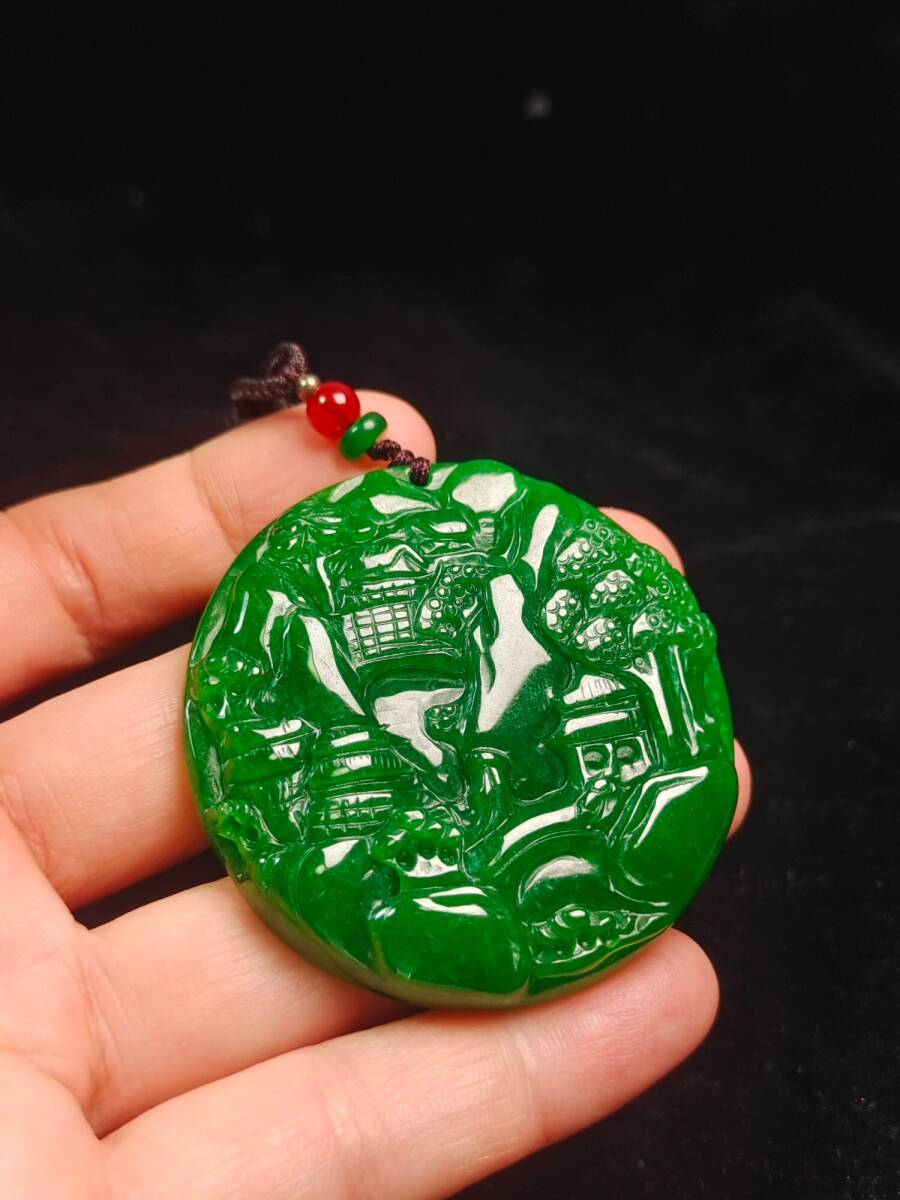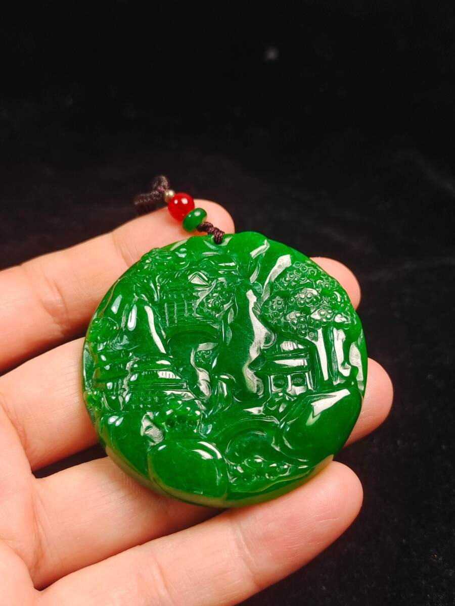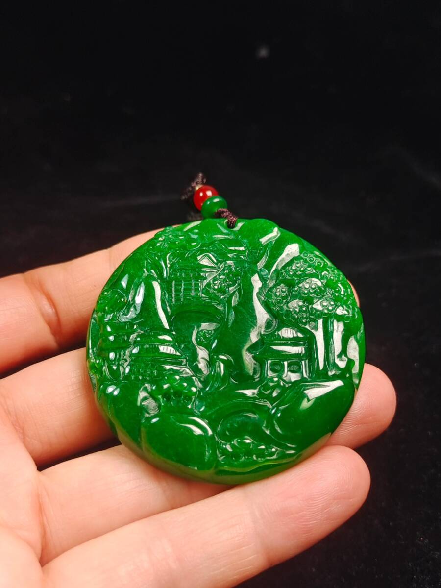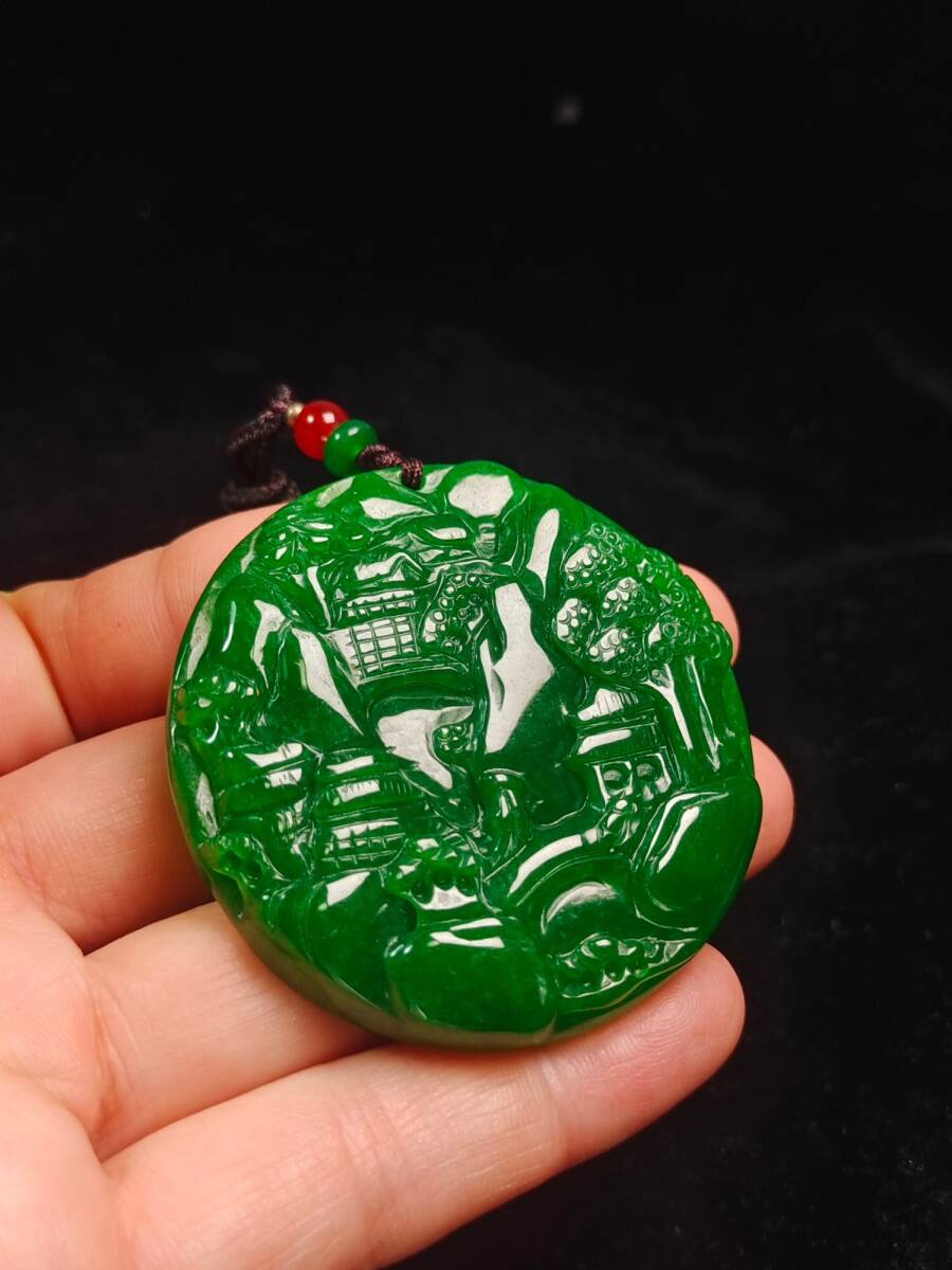 | 【古寶奇蔵】翡翠製・細密彫・山水ペンダント・根付・裝身具・古董品・中国古玩・時代物・希少珍品・中国時代美術 |
