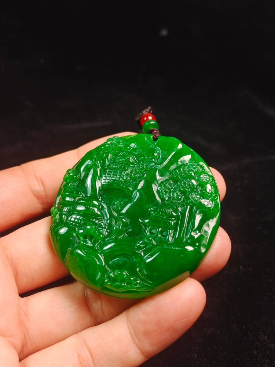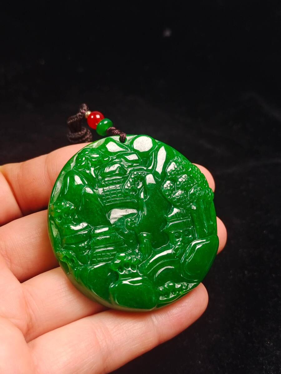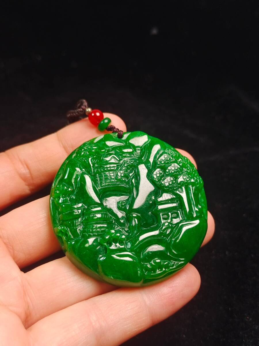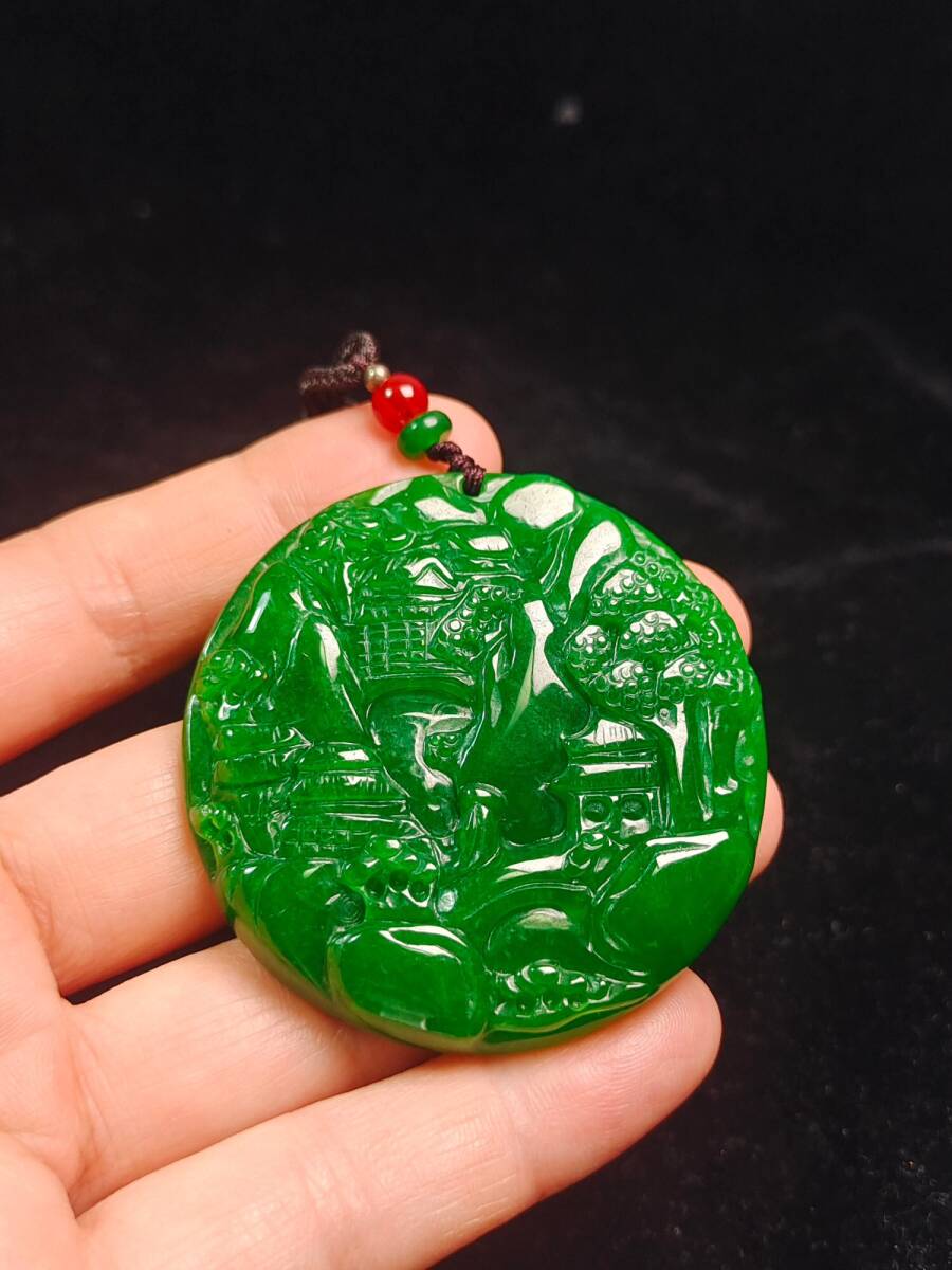 | 【古寶奇蔵】翡翠製・細密彫・山水ペンダント・根付・裝身具・古董品・中国古玩・時代物・希少珍品・中国時代美術 |