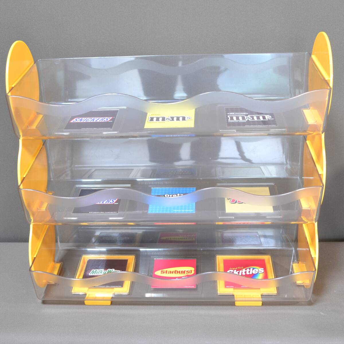 実際に店舗で使われていたものでスニッカーズやミルキーウェイというマース社の商品が色とりどりに目を楽しませてくれます。