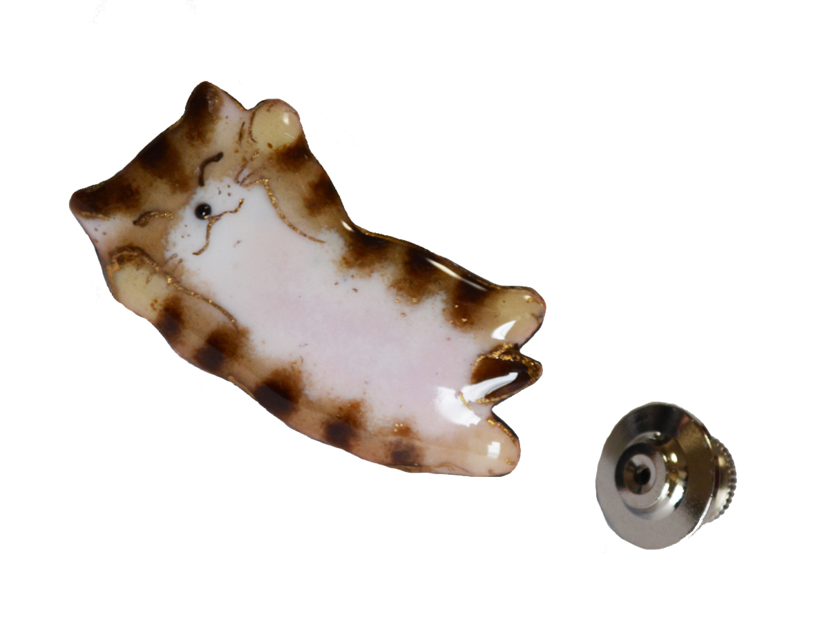【UncleZ】 七宝焼き ピンブローチ(おなか見せ猫)