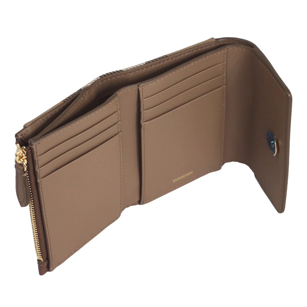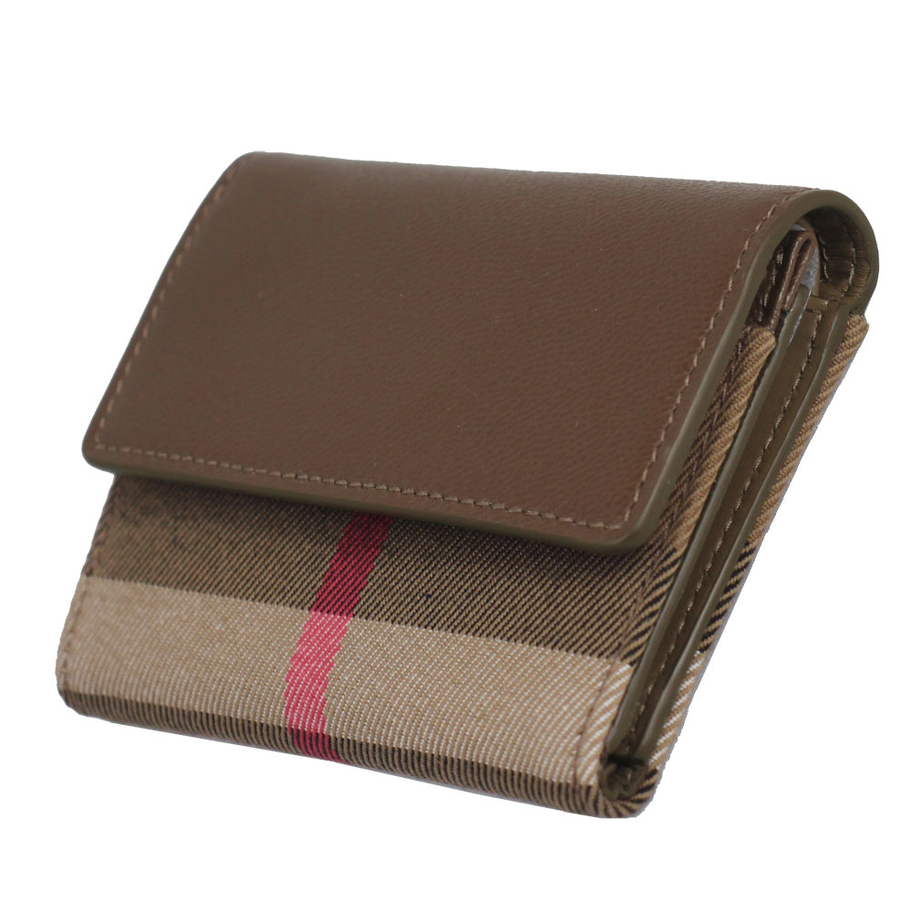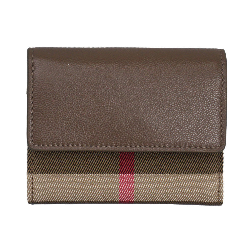 | 商品名 | 三つ折り財布 キャンバス/レザー チェック/ブラウン系 |