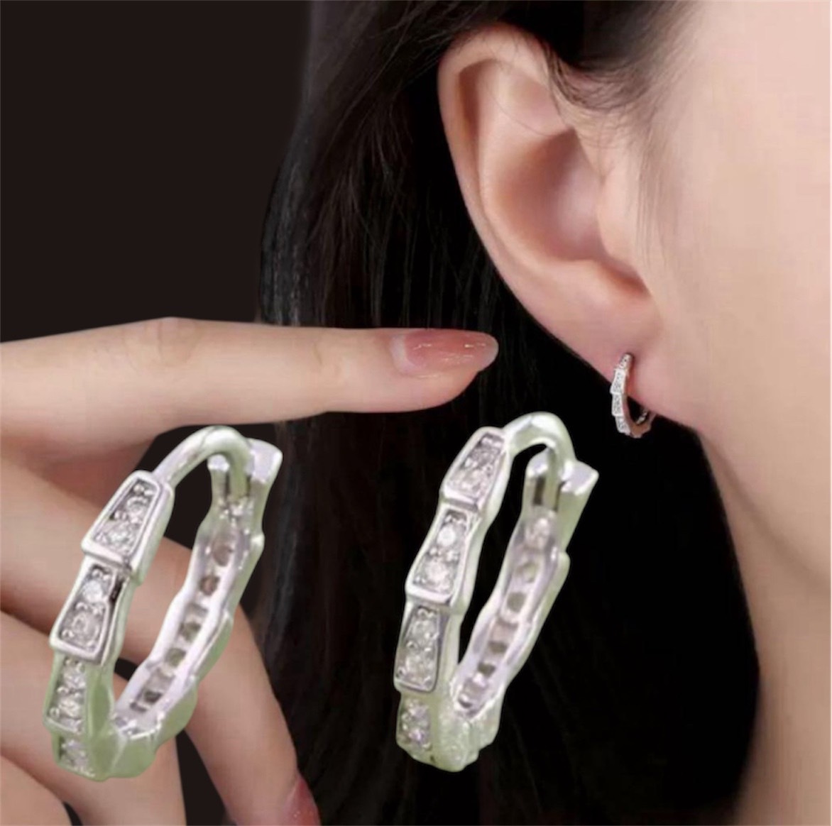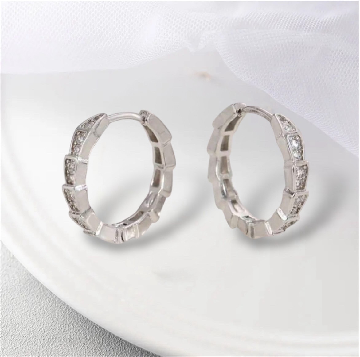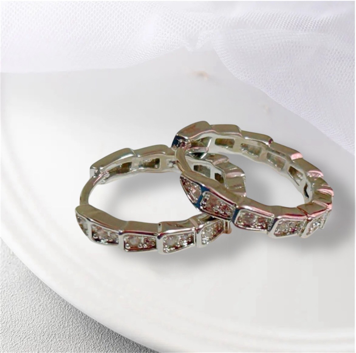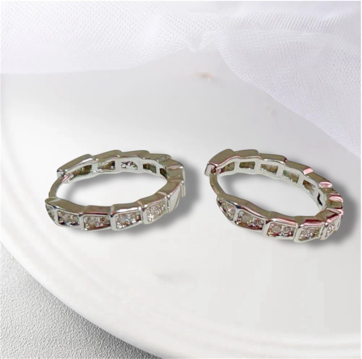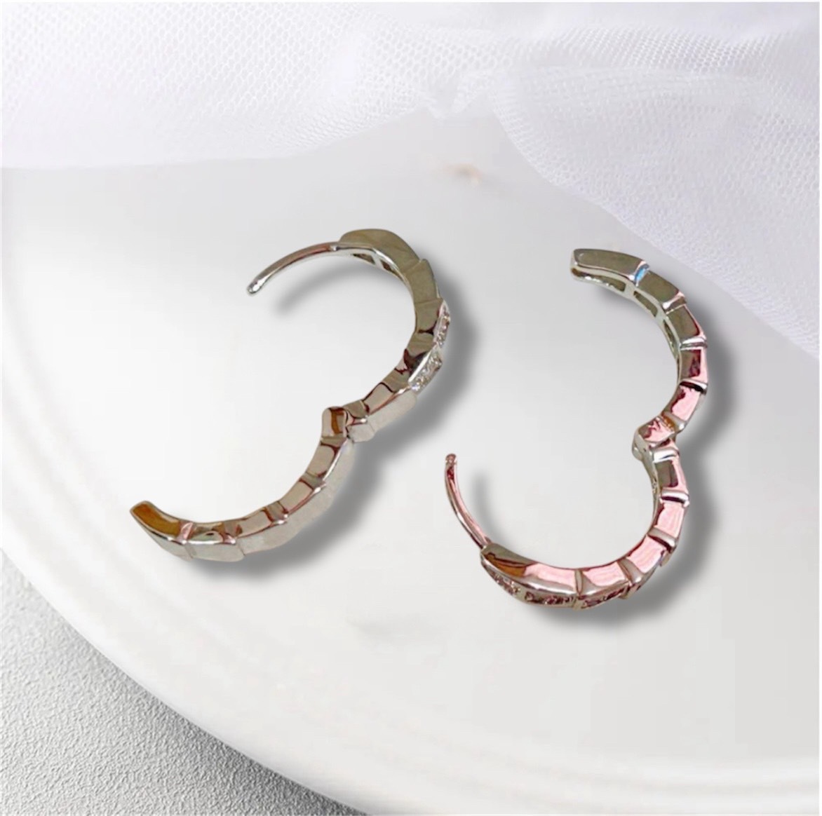 CZダイヤ×蛇モチーフ ループピアス(S925/K18コーティング)
