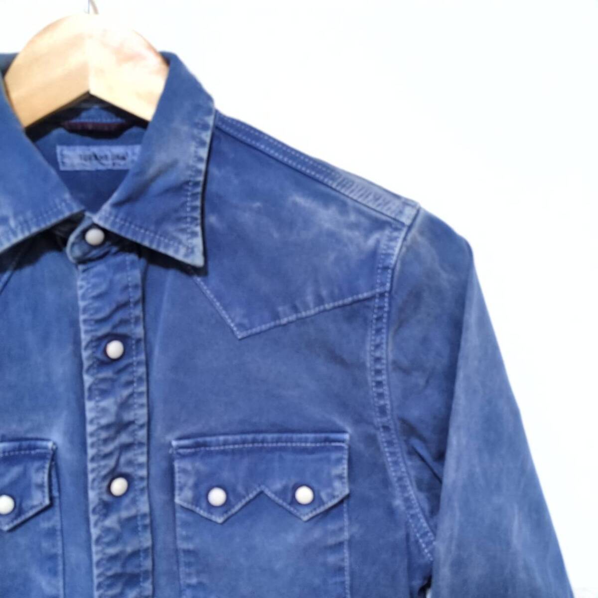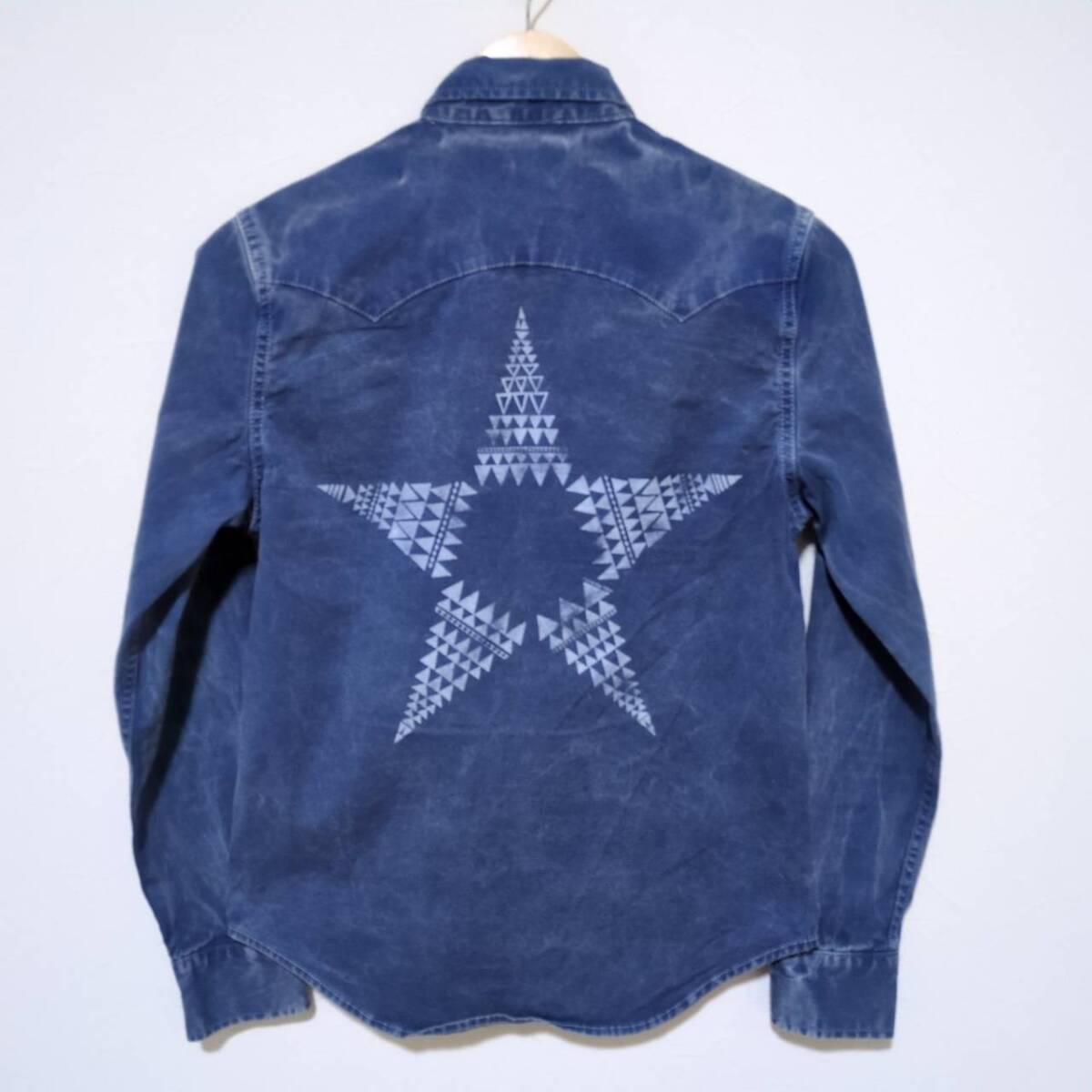 h2913A TURN ME ON ターンミーオン Sサイズ WTW別注 ウエスタンシャツ ネイティブ柄 メンズ インディゴブルー 古着 アメカジ