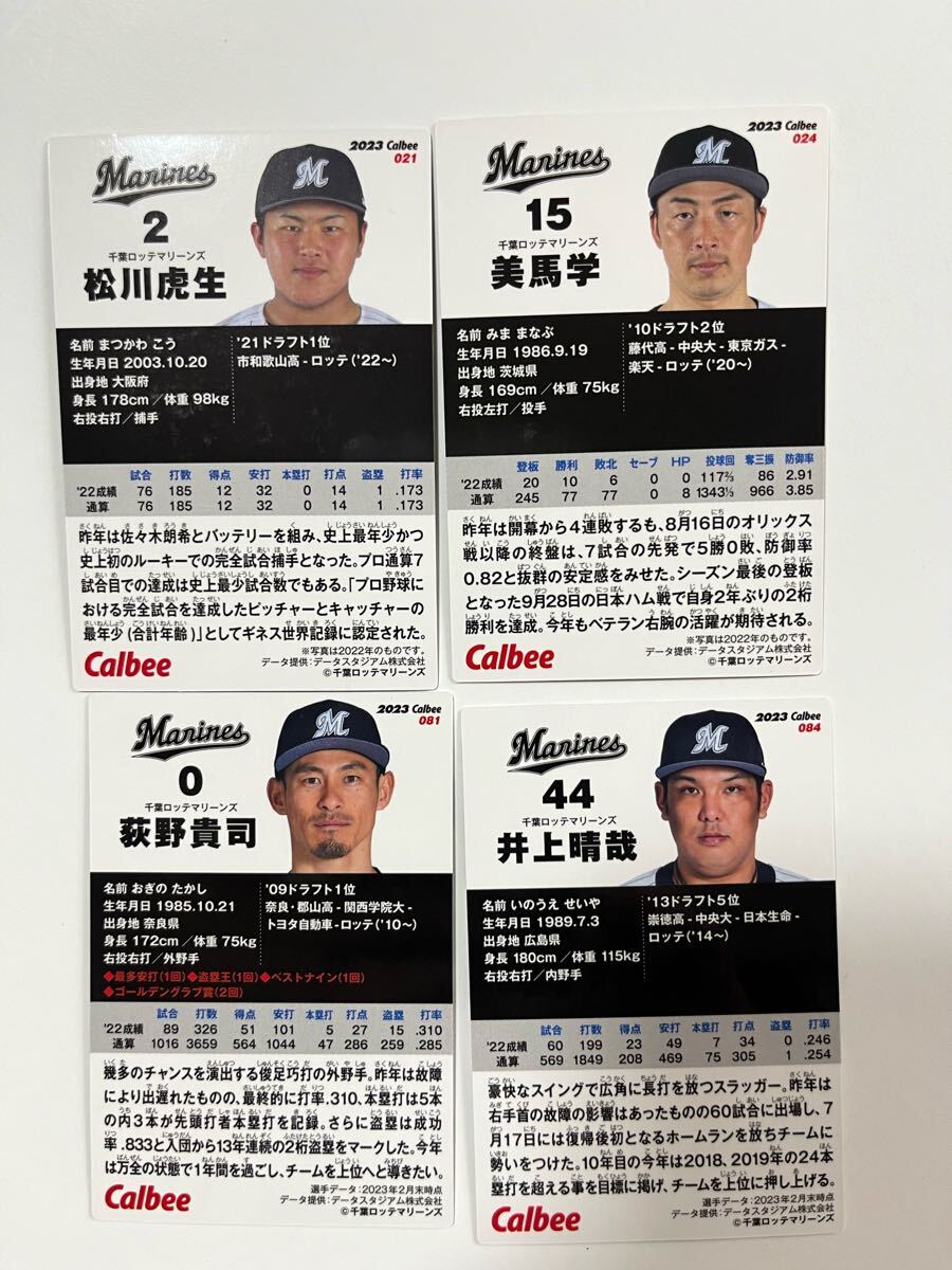 カルビー2023 プロ野球チップス トレーディングカード レギュラー 千葉ロッテマリーンズ 4枚セット 松川 美馬 荻野 井上