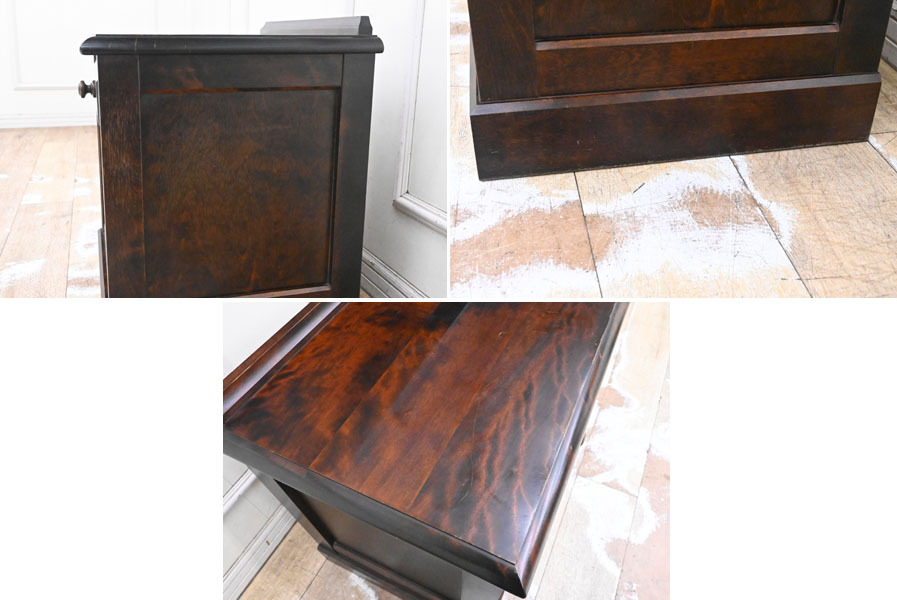 ----------------------------------------------------------------------------------------- ●送料や注意事項は必ずご確認下さい。落札後にトラブルになるケースが増えております。● ◆コンディションは写真・文章にて記載して有りますが、全てのキズの写真は掲載致しておりません。大きなダメージを除き見落とし、記載漏れが有る事はご了承下さい。 ◆当サイトにて出品する商品は多種多彩で、当方商品知識の無い物も多数ありますので落札後の質問やメンテナンス等にはお答えできません。 ◆入札された時点で、画像、文章をご理解していただいたものと判断させていただきます。不明な点は前もってQ&Aからお願い致します。入札後の質問やお電話等でのキャンセルは一切受け付け致しません。 ◆商品説明に「ノークレーム」と記載しているものに関しては、如何なる状況で届いても保証致しません。詳しくは注意事項の「商品到着後について」の最後に記載しておりますのでご確認下さい。 ---------------------------------------------------------------------------------------- 民芸家具の中で最も人気の高い北海道民芸の多目的テーブルUSED品の出品です。 北海道民芸家具を名乗って40年。その間、北海道の原野で育った樹齢100年から150年の樺の木、しかも家具の寿命を永く保つ無垢材にこだわるのは、親子二代にも三代にも渡って使ってもらえるようにと願っているからです。傷んだらすぐに買い替えるのではなく、修理して末永く使っていただくことが北民の基本思想なのです。 今も昔もこれからも変わらない、時代に流されない北民家具を是非この機会にご購入ご検討下さい。 サイズ 幅50 奥40 高53cm 【コンディション】 中古品ですのでキズ、ヨゴレ、塗装剥がれ、下部湿気を吸ったような跡等、年代のダメージ有ります。 | ||