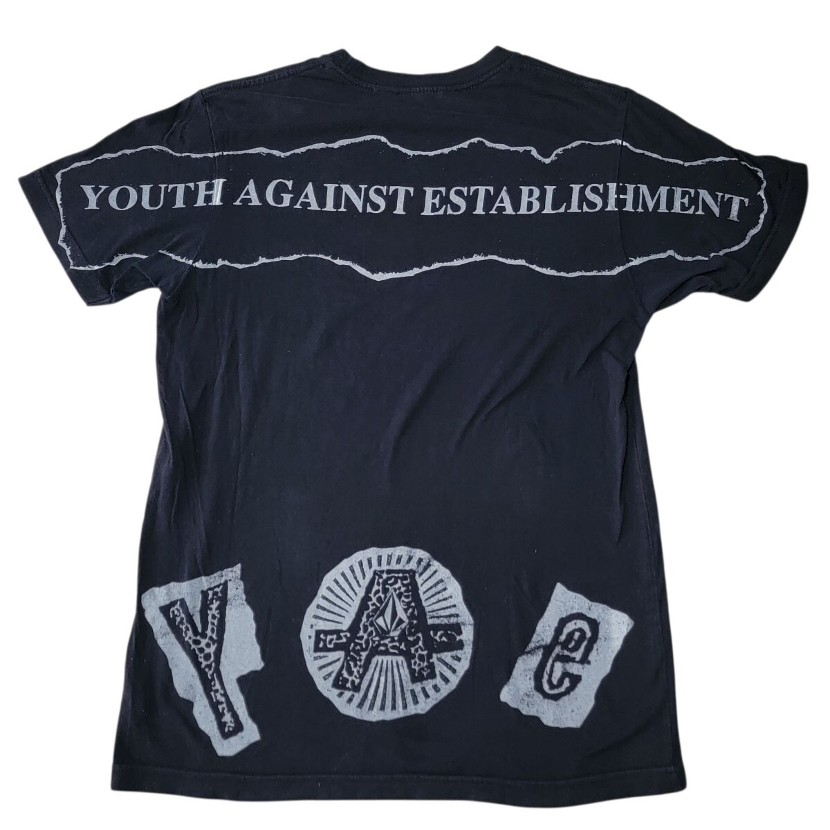 ボルコムの哲学 " YOUTH AGAINST ESTABLISHMENT(権威主義に抵抗する若者たち)"がプリントされたTシャツとなります。