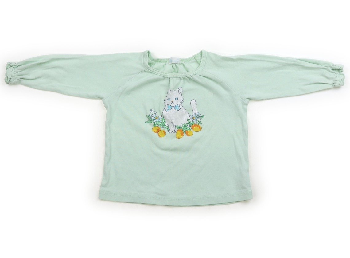シールを剥がした跡があります。やや色あせと、細かい毛玉があります。ネコのプリントにひび割れがあります。まだまだ普段着として活躍してくれそうです。