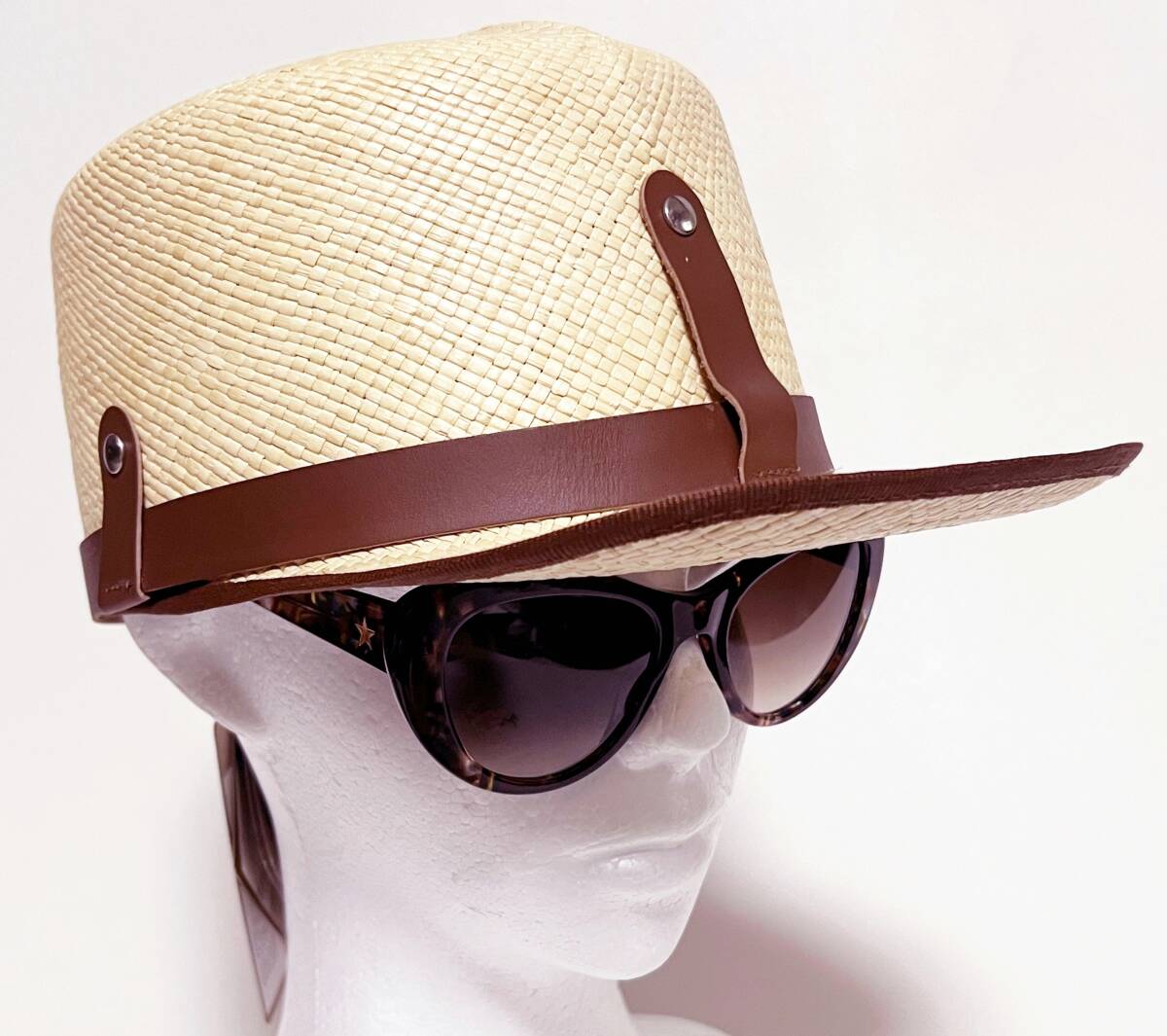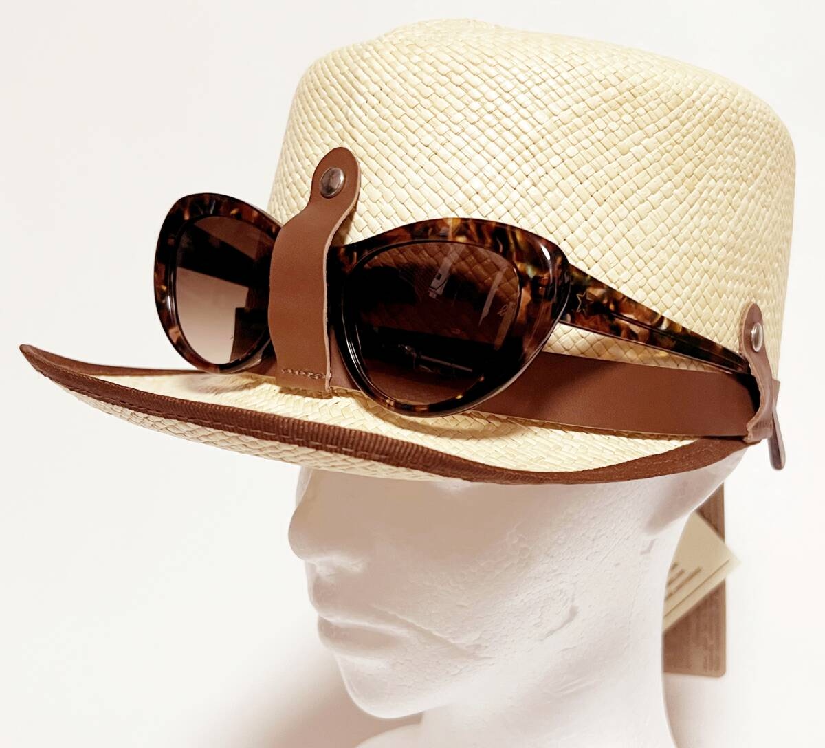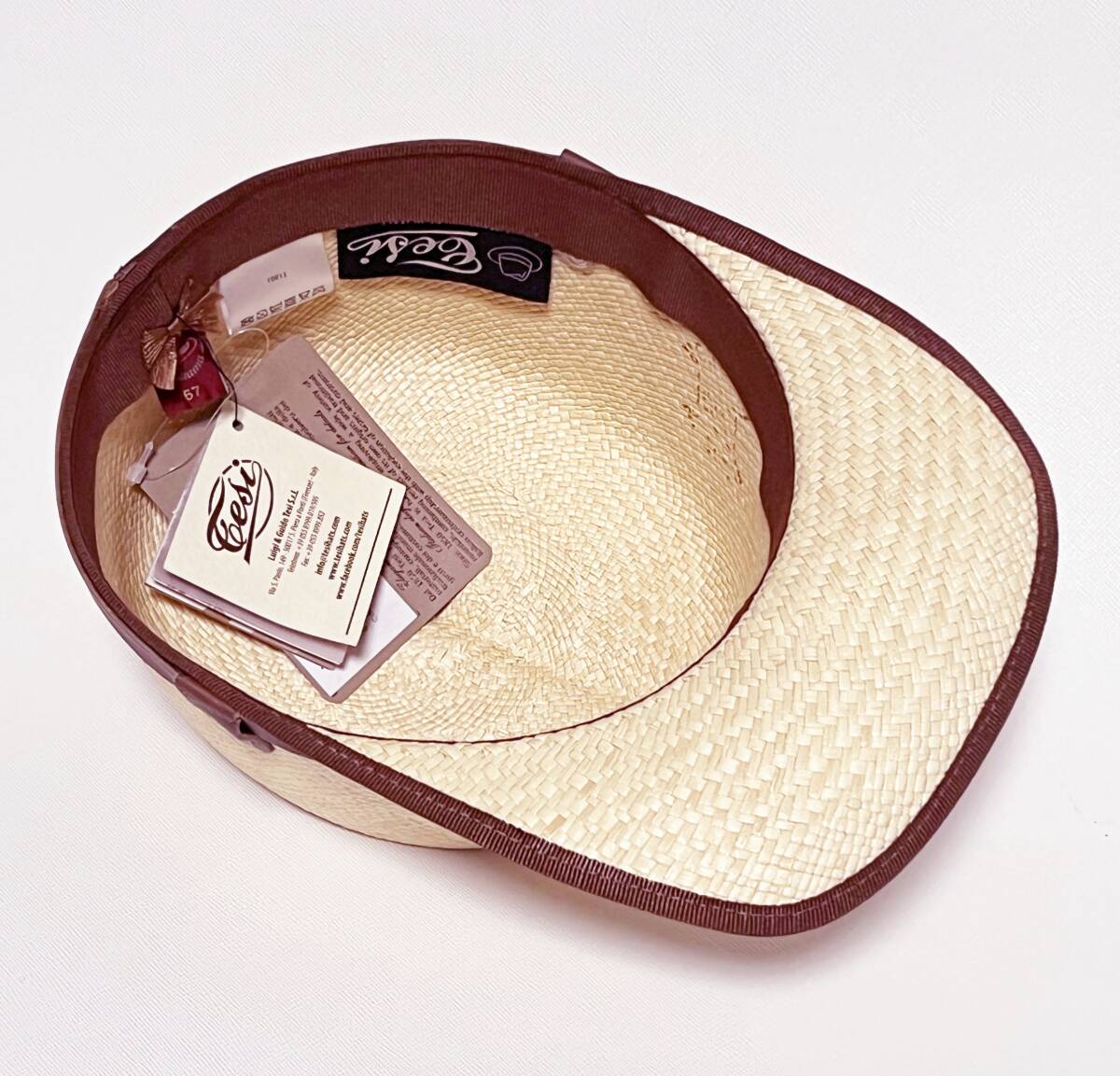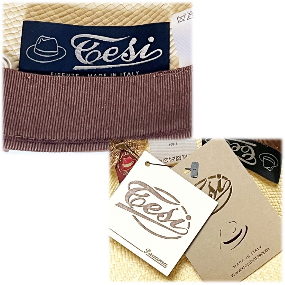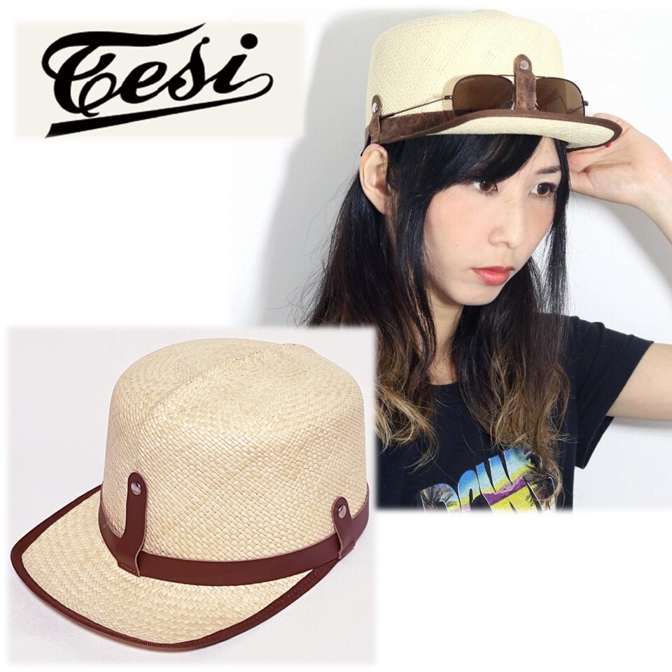 《tesi テシ》新品 定価25,300円 イタリア製 キート サングラスホルダー付パナマキャップ スジイリ 麦わら帽子 ユニセックス 57cm(M)S1683 |