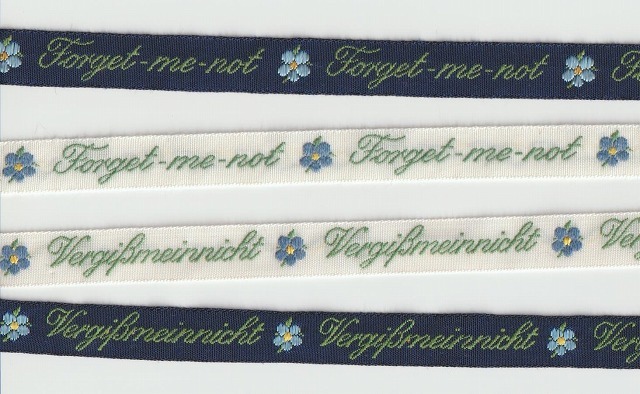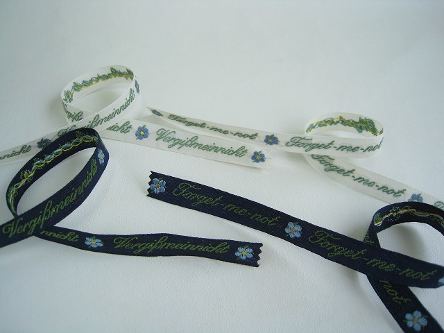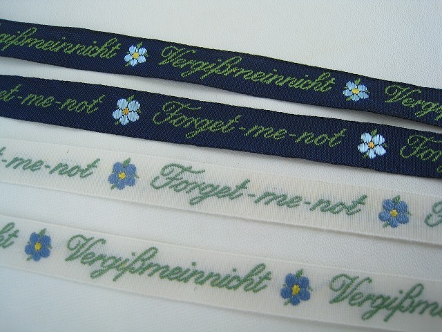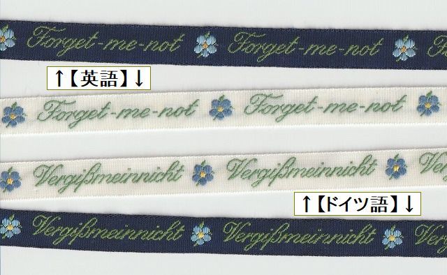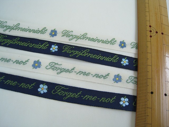 ドイツKafkaリボン*忘れな草*ジャガード織リボン 英語ドイツ語