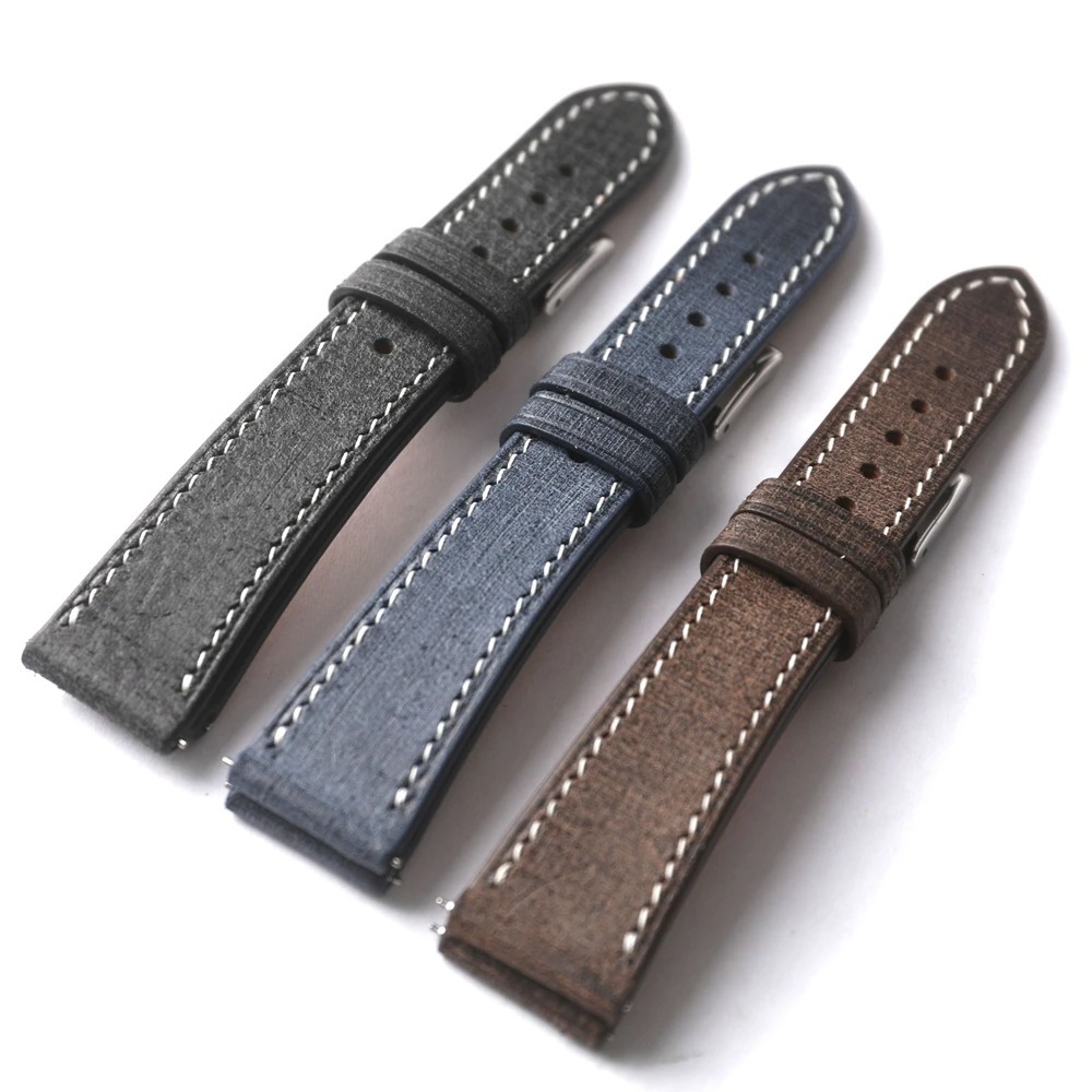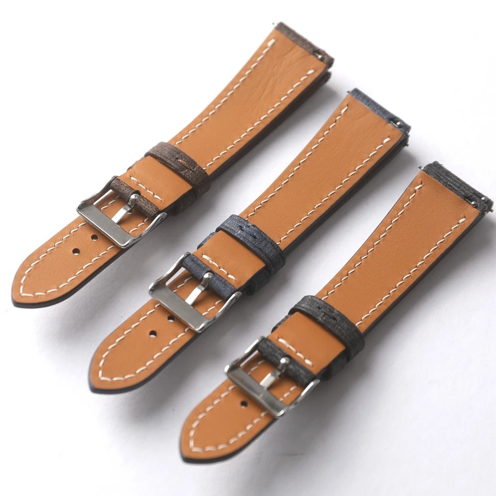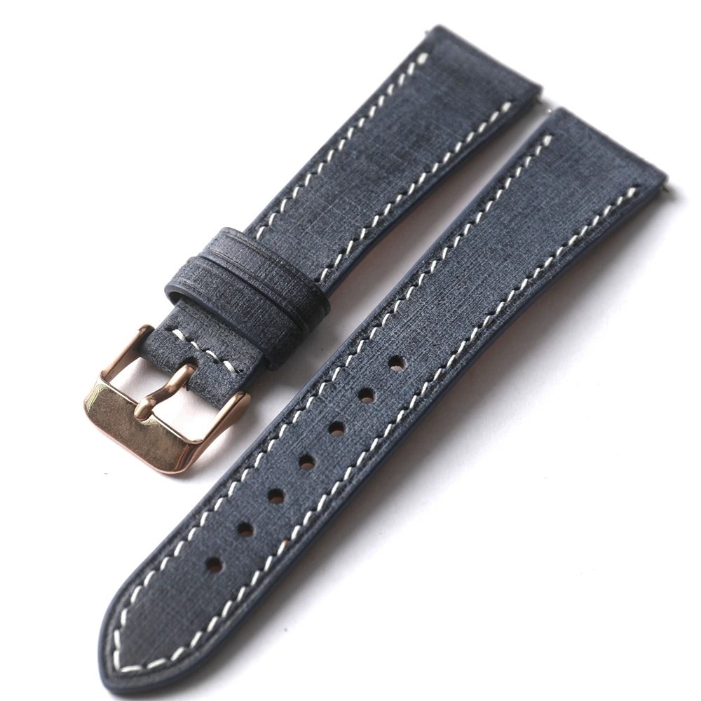 18mm,20mm, 22mm イタリア ファブリックグレイン牛革 時計バンド メンズ レザーベルト ブラウン/ブルー/ブラック Rose Gold/Silver