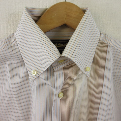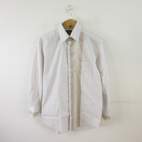 ポールスチュアート PAUL STUART ボタンダウンシャツ ワイシャツ 長袖 ストライプ 白 L *T588 メンズ