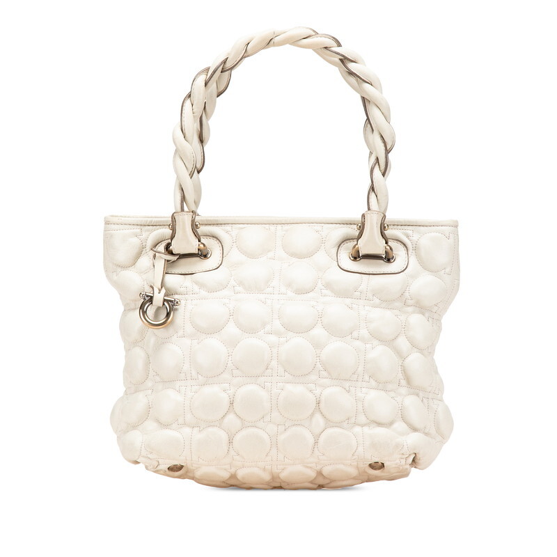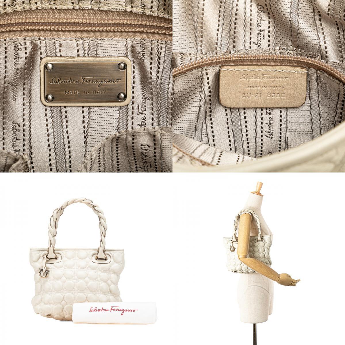 サルヴァトーレフェラガモ ガンチーニ ハンドバッグ AU-21 B380 ホワイト レザー レディース Salvatore Ferragamo 【中古】