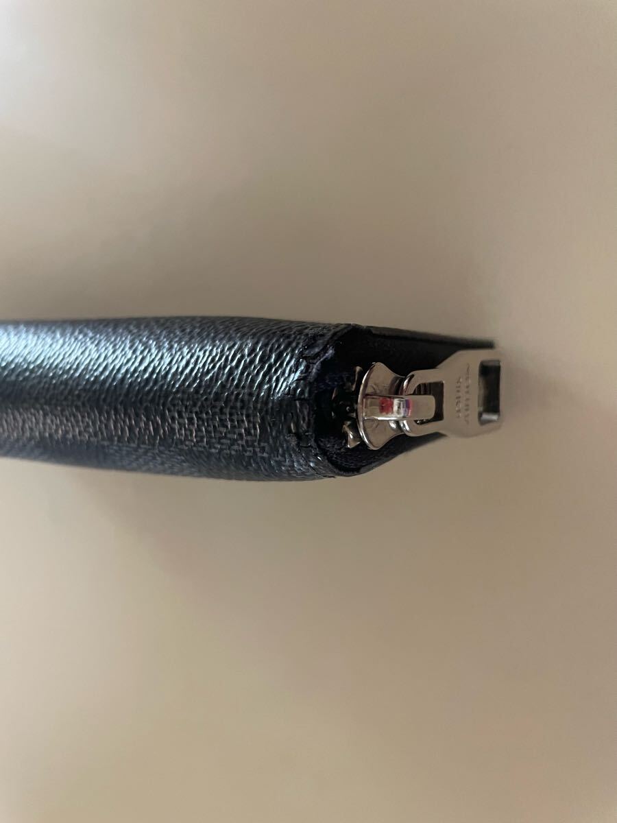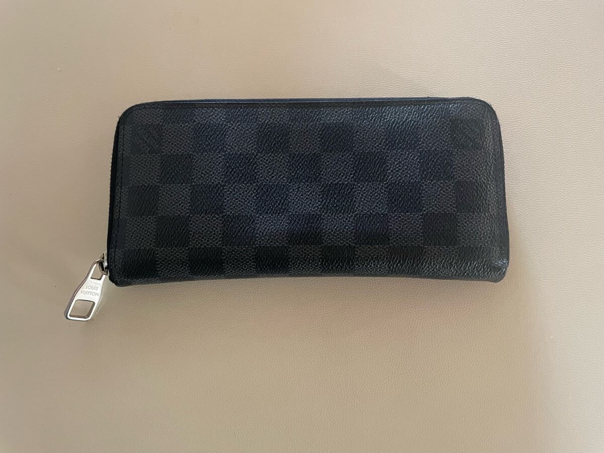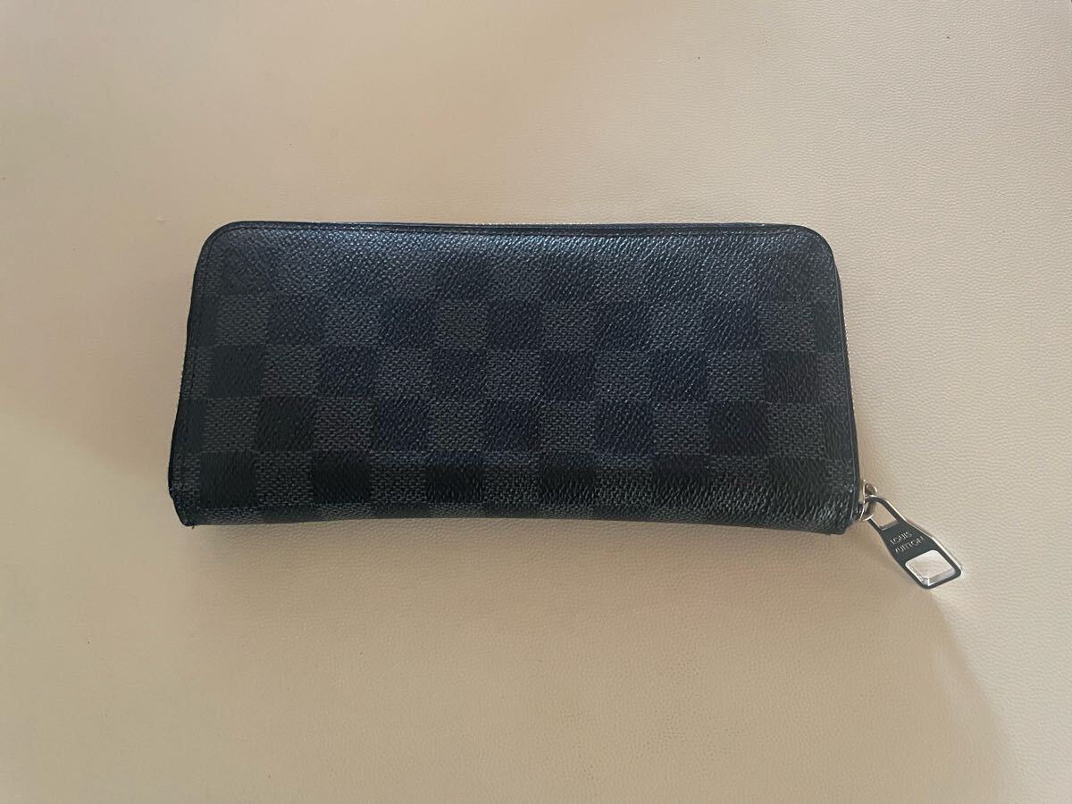 ルイヴィトンダミエグラフィットヴェルティカルラウンドファスナー長財布となります。新しい財布を購入しましたので出品致します。写真5でイニシャルを消した跡が有ります。写真7でファスナー部に1㎝位の切れが有りますが目立つ程で無くファスナーの開閉に問題は有りません。写真8て9ですがエッジ部に多少のキズが有りますが目立つ程では無いと思います。シリアルナンバーは写真10を御確認下さい。小銭入れ等財布内部の方も破れ等無く財布本体も形崩れ無く保存状態は良いと思いますが画像を御確認の上ノークレームにてお願い致します。サイズは約20㎝×10㎝×2㎝です。箱等付属品は有りませんのでレターパックプラス600円にて発送致します。