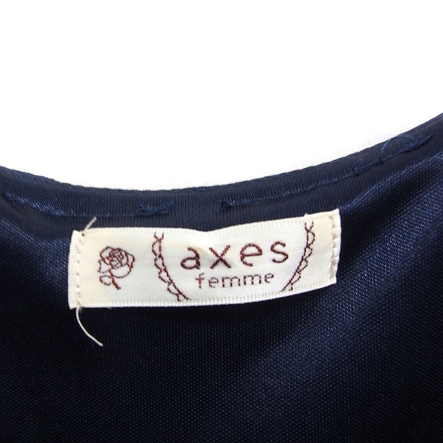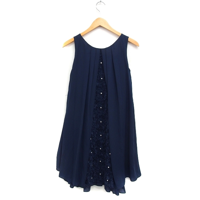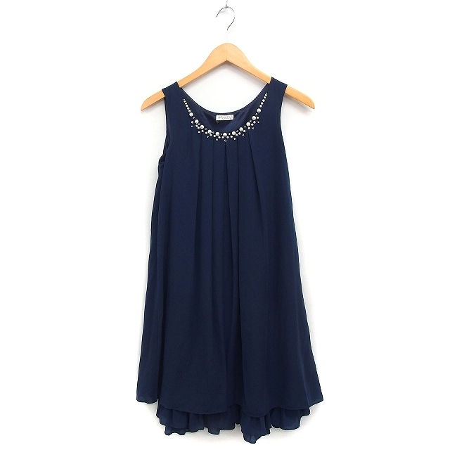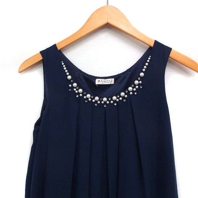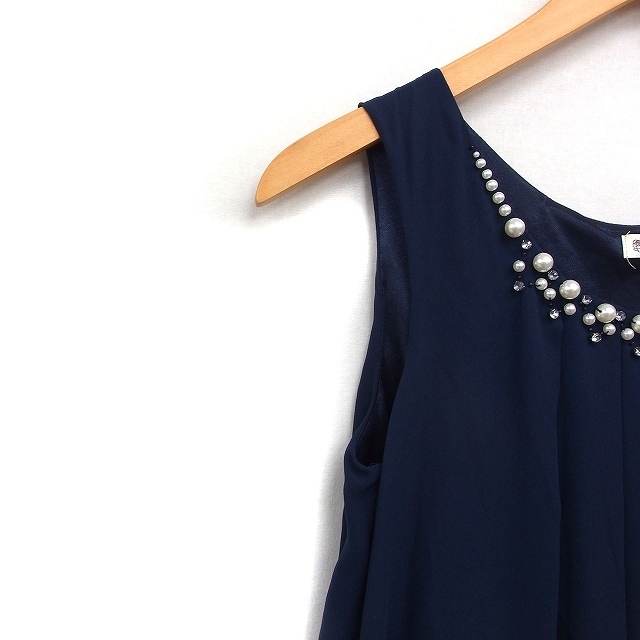 アクシーズファム axes femme シフォン ワンピース ノースリーブ ひざ丈 Aライン 装飾 パーティードレス M ネイビー 紺 /FT37 レディース