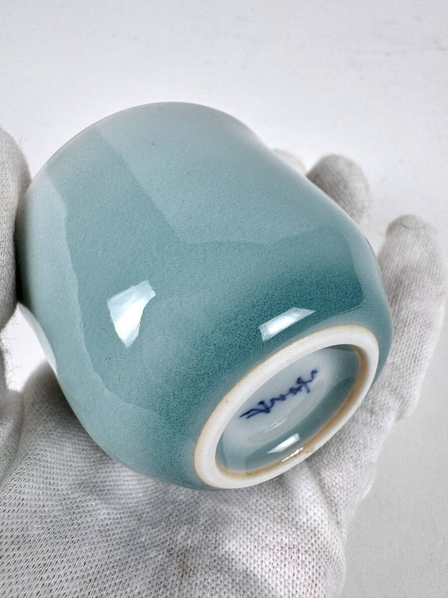未使用★小笠原長春 青瓷 ぐい呑 大川内焼 鍋島青磁 盃 酒杯 猪口 酒器 共箱 長春青磁陶窯 伊万里 佐賀県陶芸