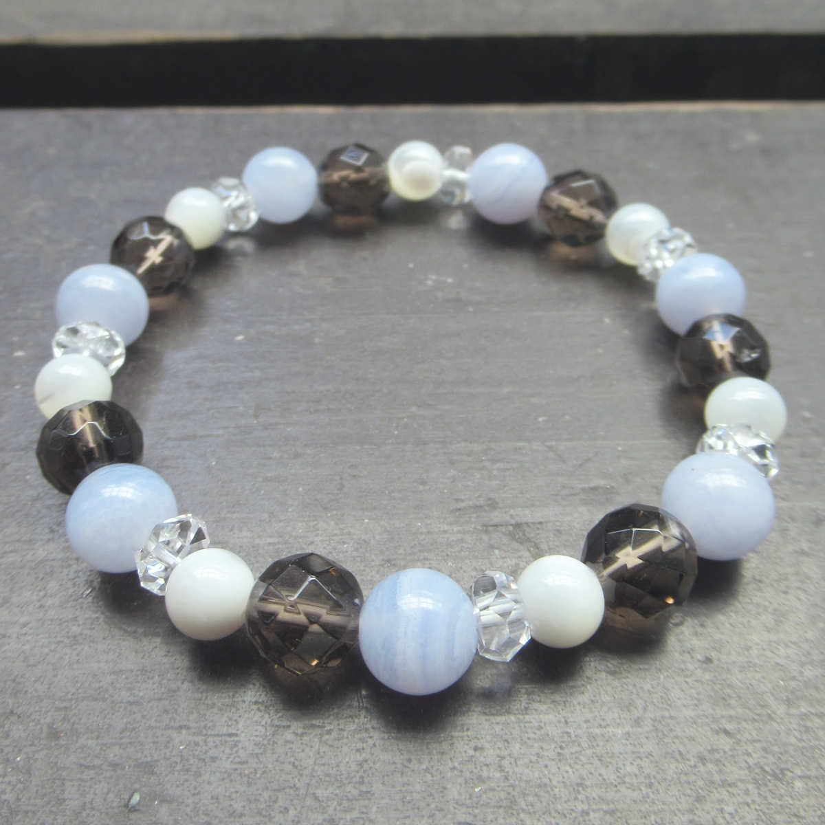 ブルーレースxスモーキークォーツxマザーオブパールブレスレット 天然石 パワーストーン