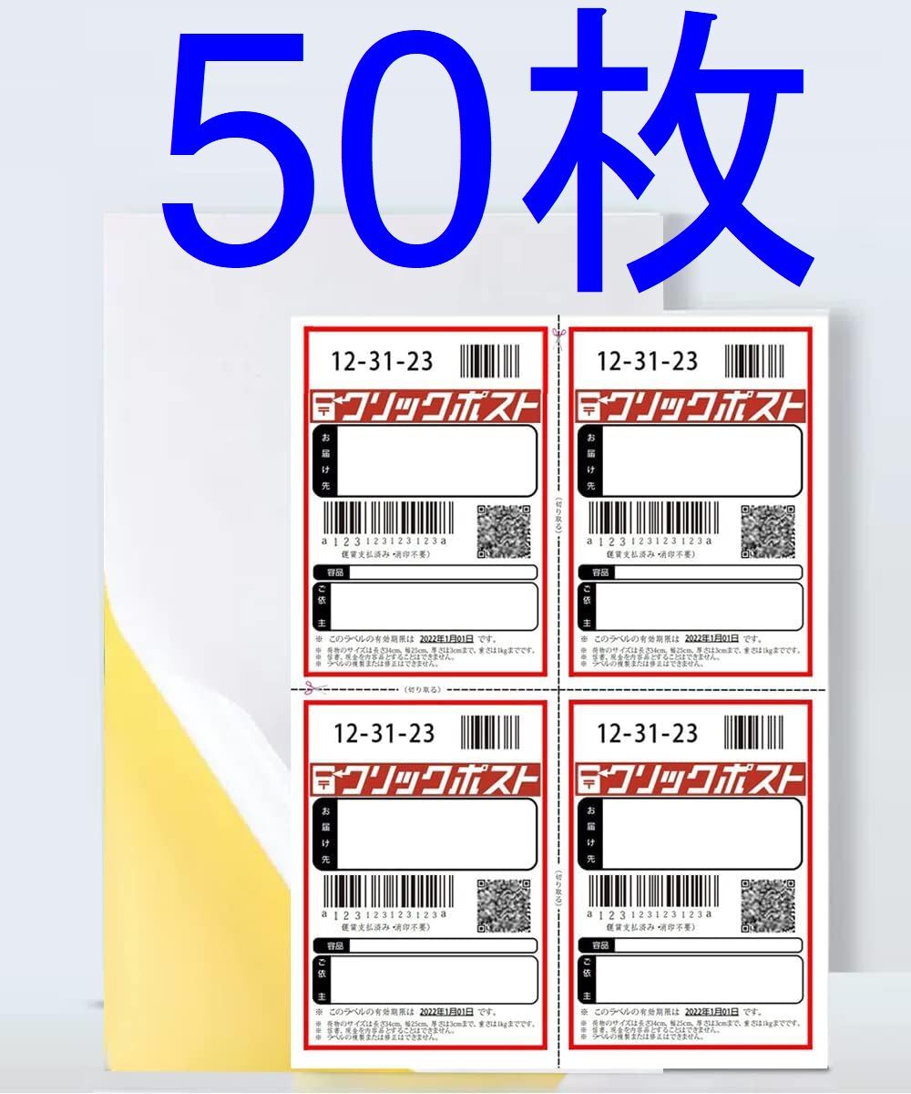 クリックポスト ラベルシール 4面 A4サイズ 出品者向け 配送 ラベル 用紙 4面 インクジェット レーザープリンター対応