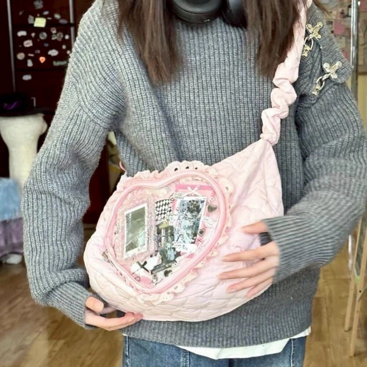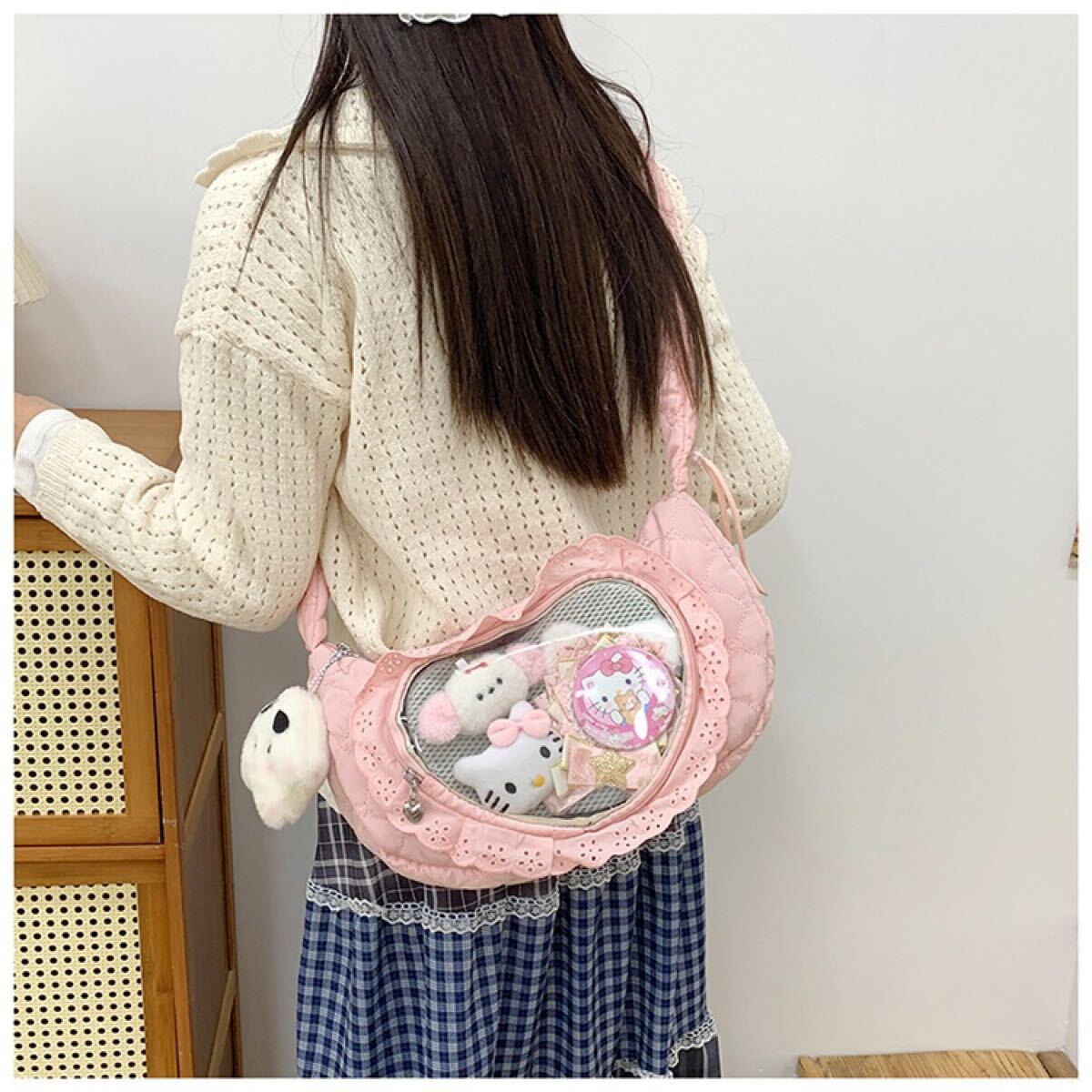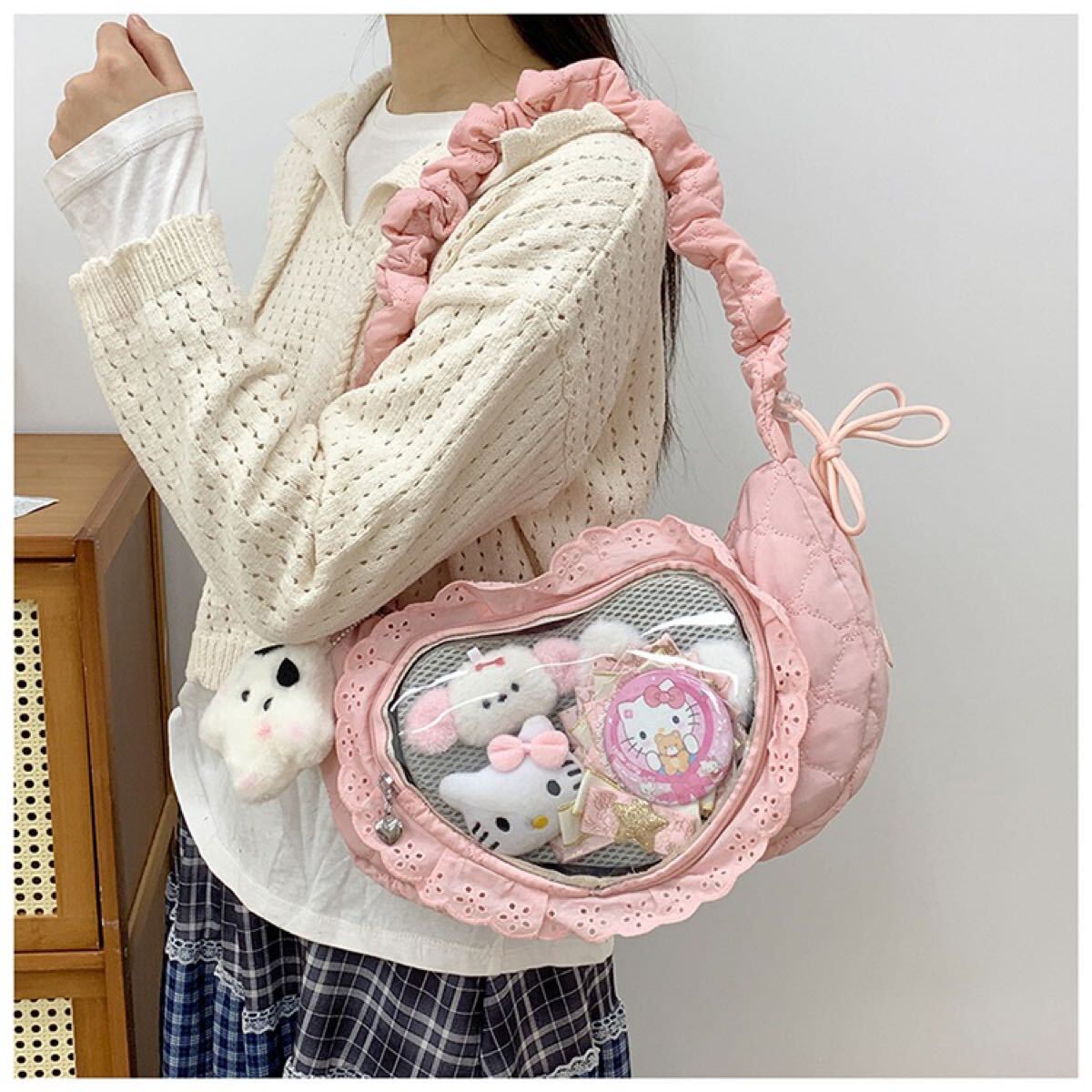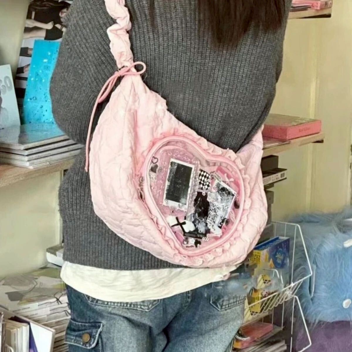 フリル ハート 窓付き 推し活 ショルダーバッグ ピンク NE0433Y メッセージャーバッグ