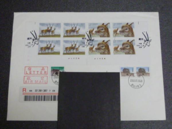 ○裏面を写しておりませんが、北京(差出人名有)の日本宛て実逓便、又は初日印付カバーです。消印をご参考下さい。