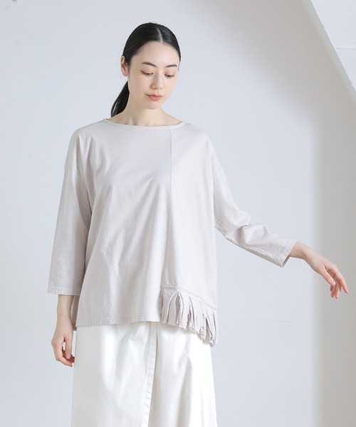 <素材について>上質なコーマ糸を、柔らかな風合いに仕上げたベーシックな天竺素材と、綿ローンを重ねて製品染めしています。“PAPER”から連想したTANZAKのモチーフをポイントにしています。<デザインについて>Plantationならではのテクニック要素を加えたデザインカットソー。左裾に配置されたTANZAKモチーフがポイント。ちょっとしたデザインポイントが着ていて気分を高めてくれる1着です。肘が隠れる7分袖~8分袖ほどの袖丈になってる為端境期も使いやすいデザイン。