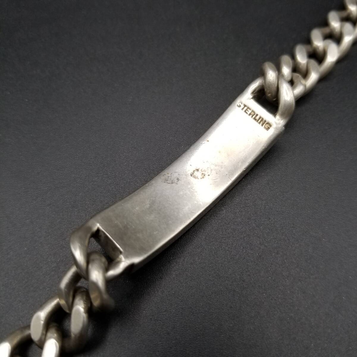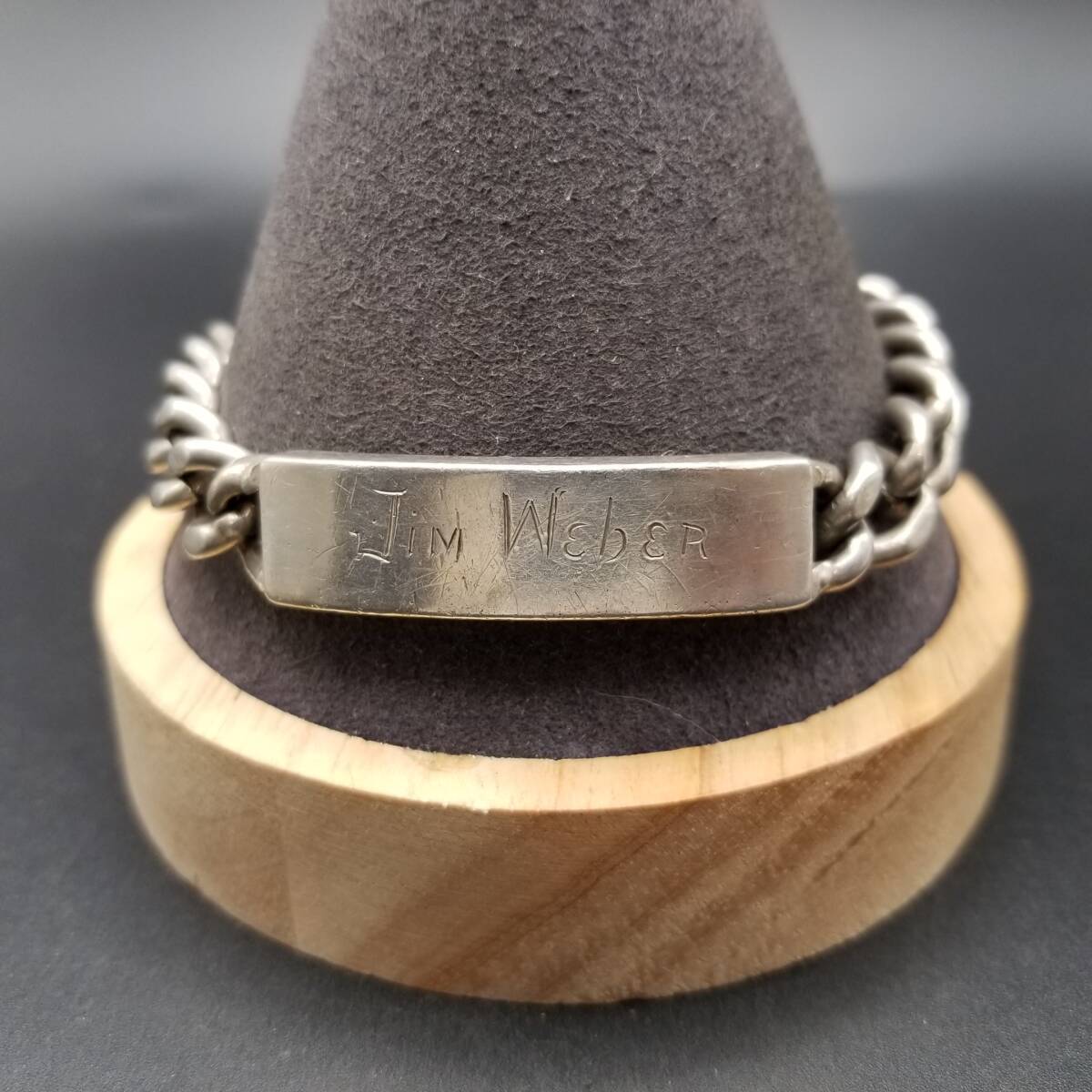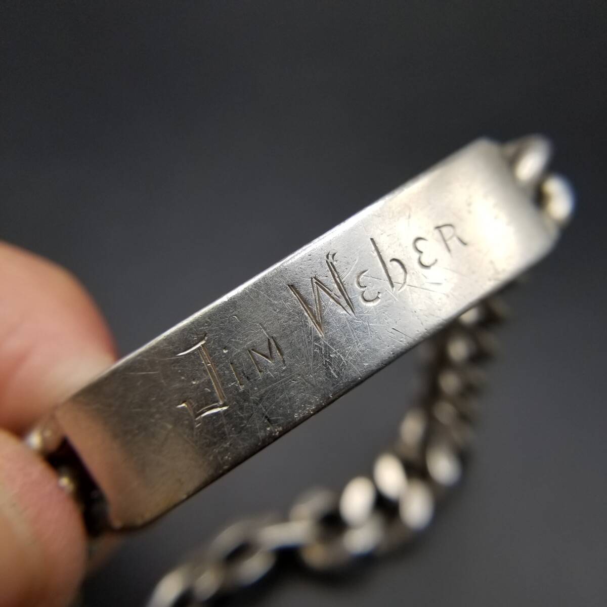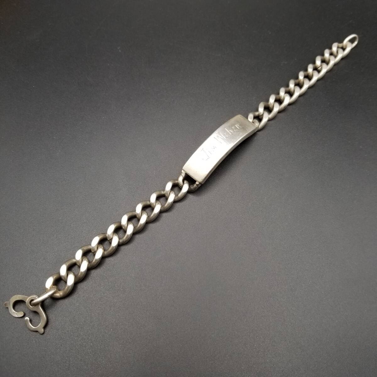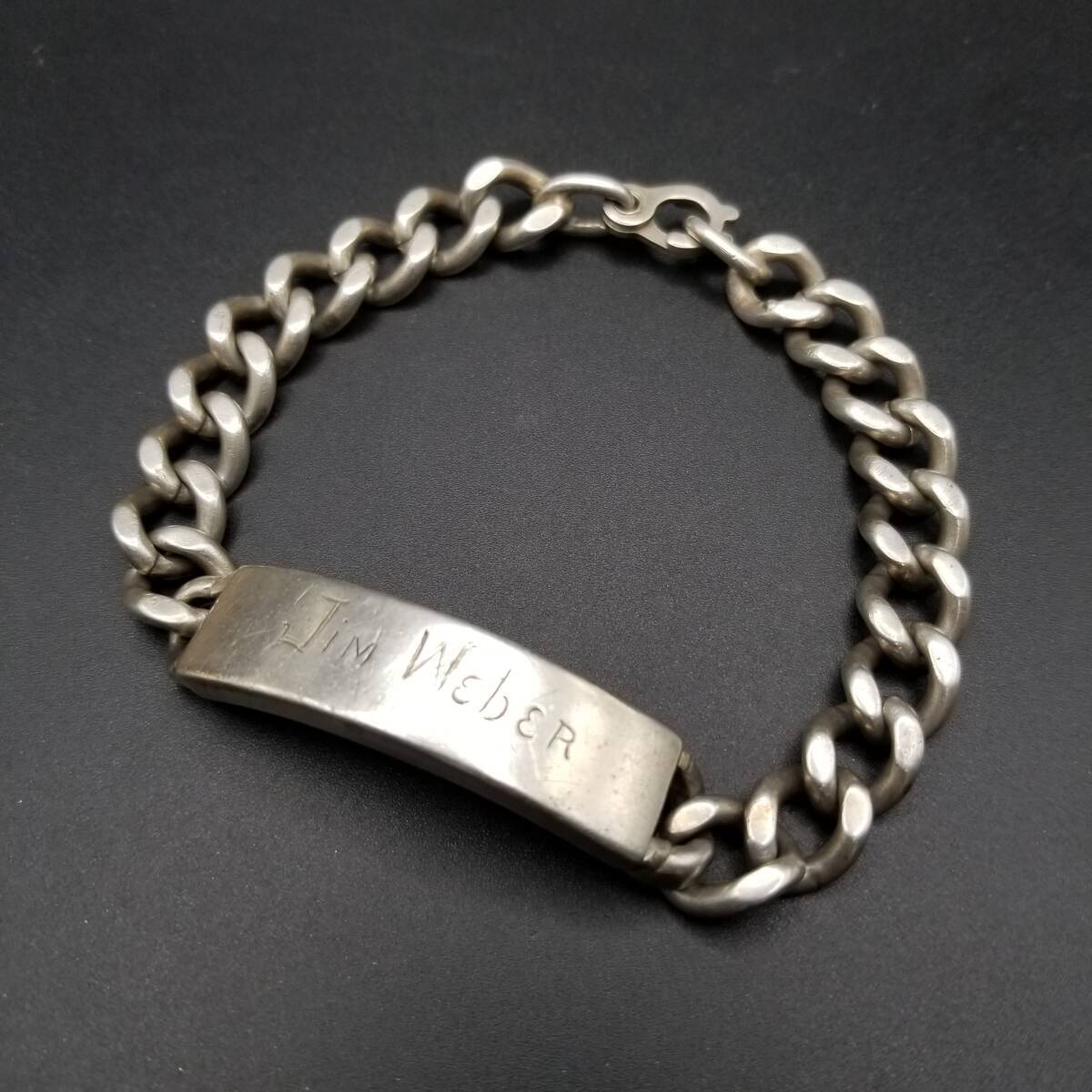 IDタグ 長方形プレート 925 シルバー ヴィンテージ ブレスレット 銀 ネーム彫金 Jim Weber 幅広 喜平チェーン 重厚感 Y21-Y