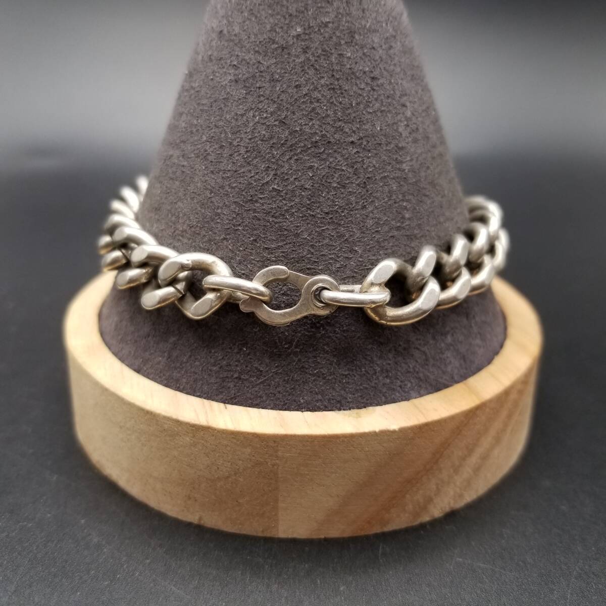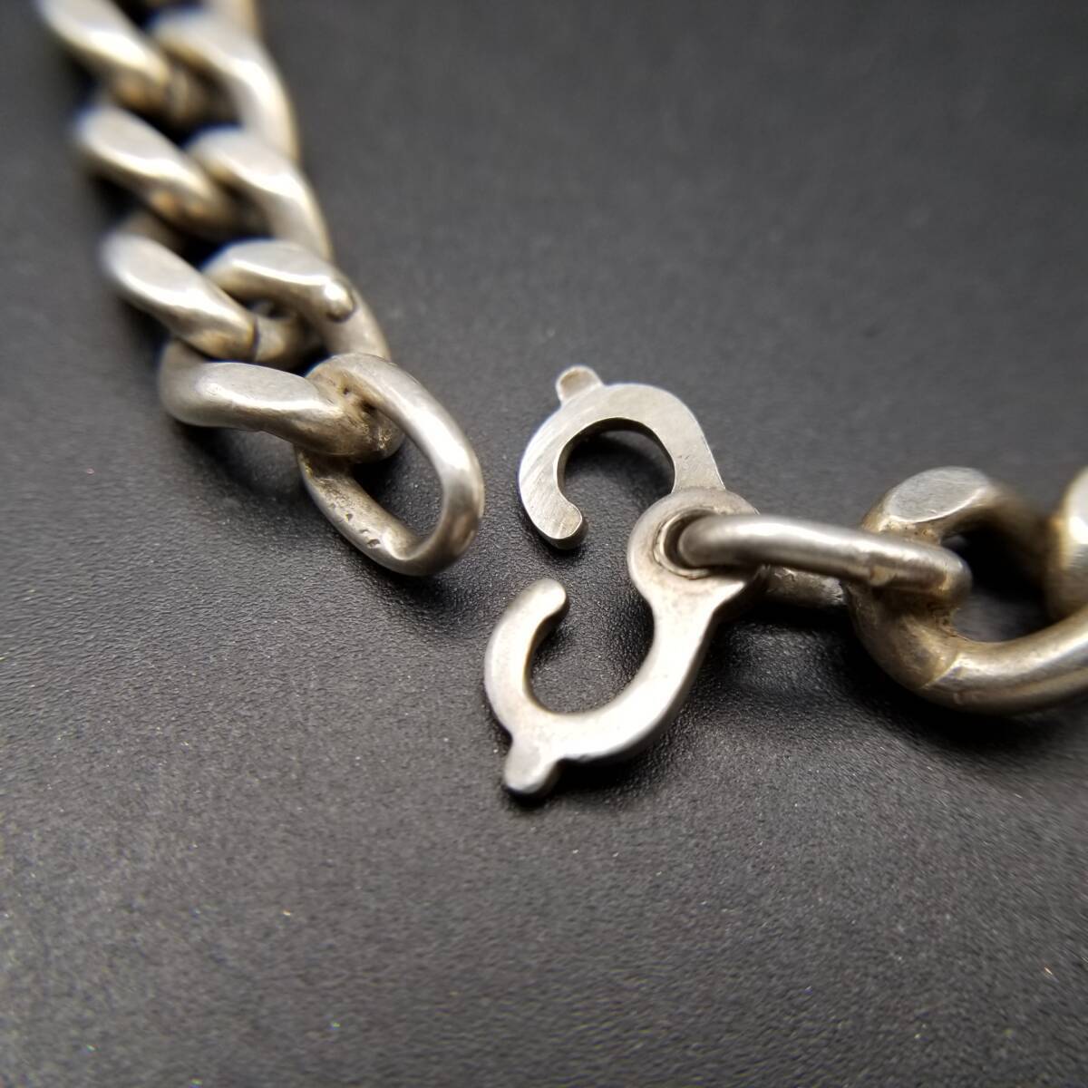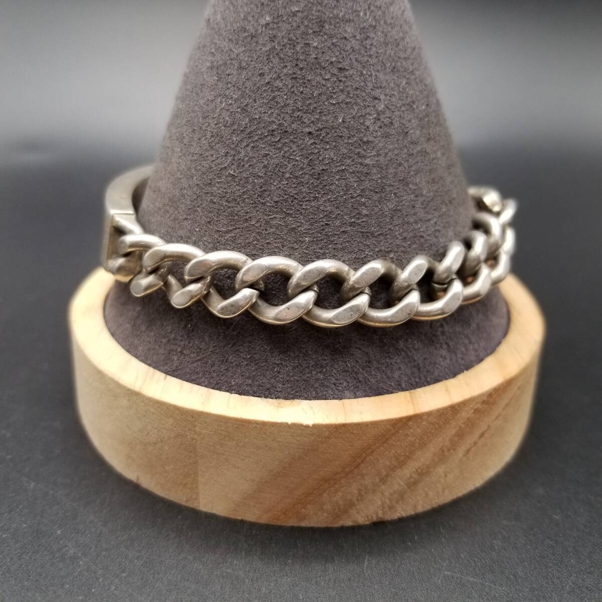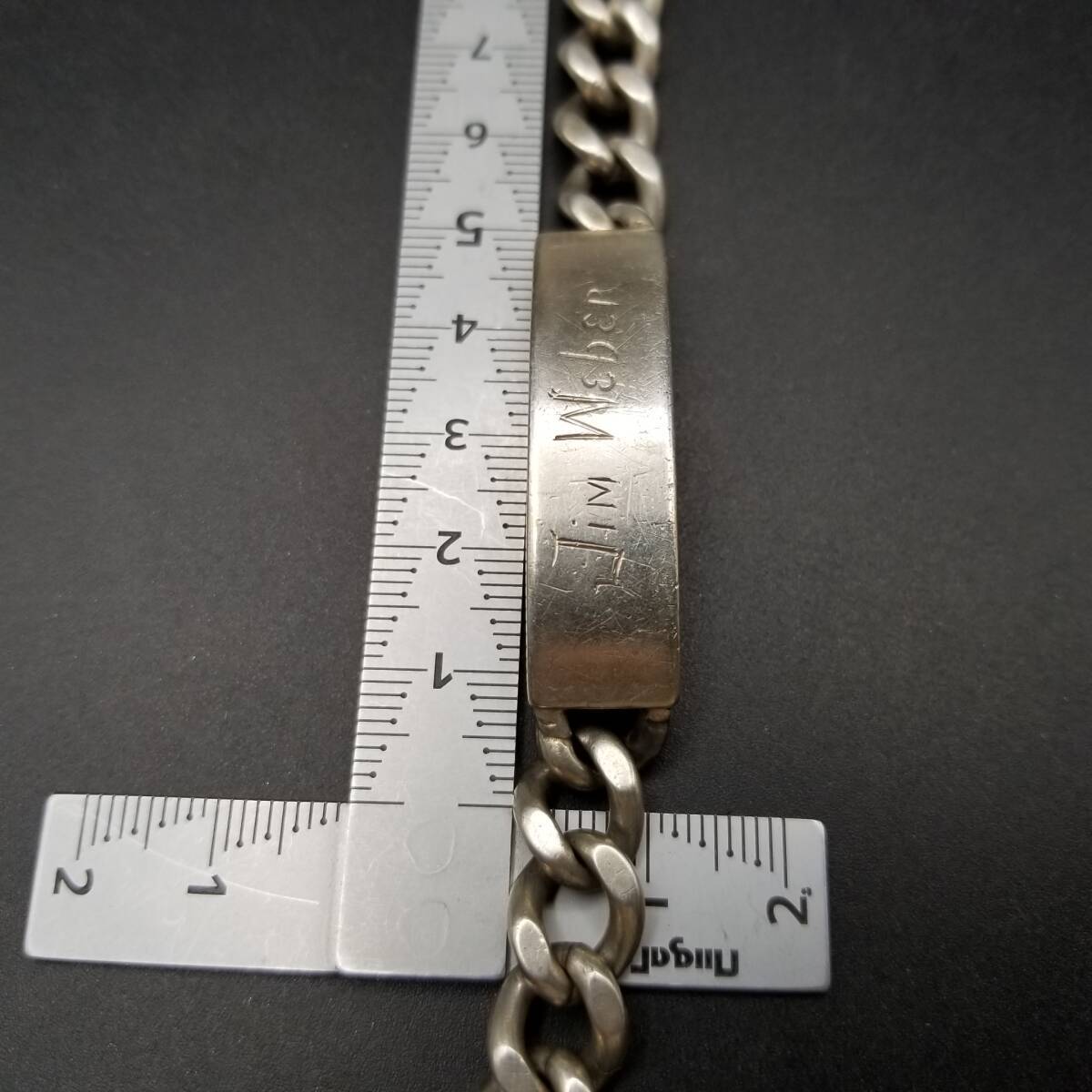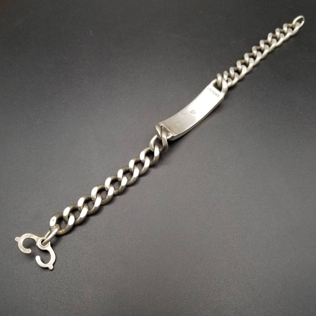 IDタグ 長方形プレート 925 シルバー ヴィンテージ ブレスレット 銀 ネーム彫金 Jim Weber 幅広 喜平チェーン 重厚感 Y21-Y