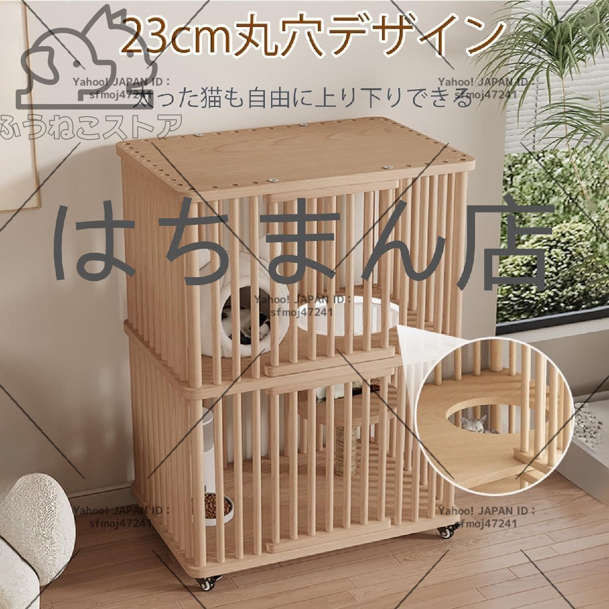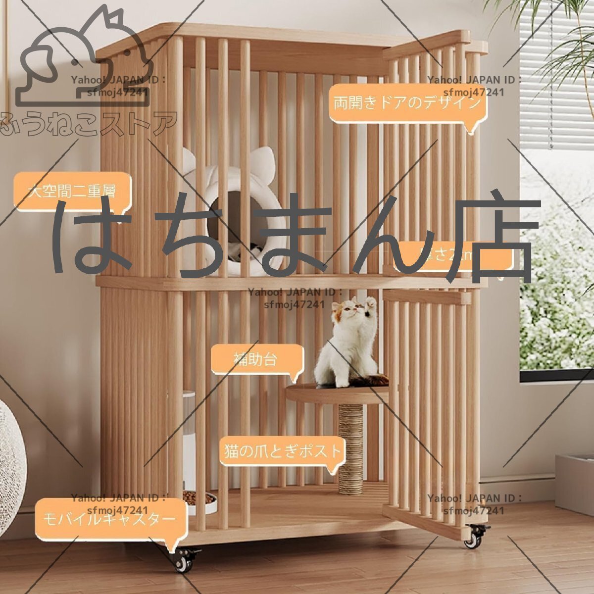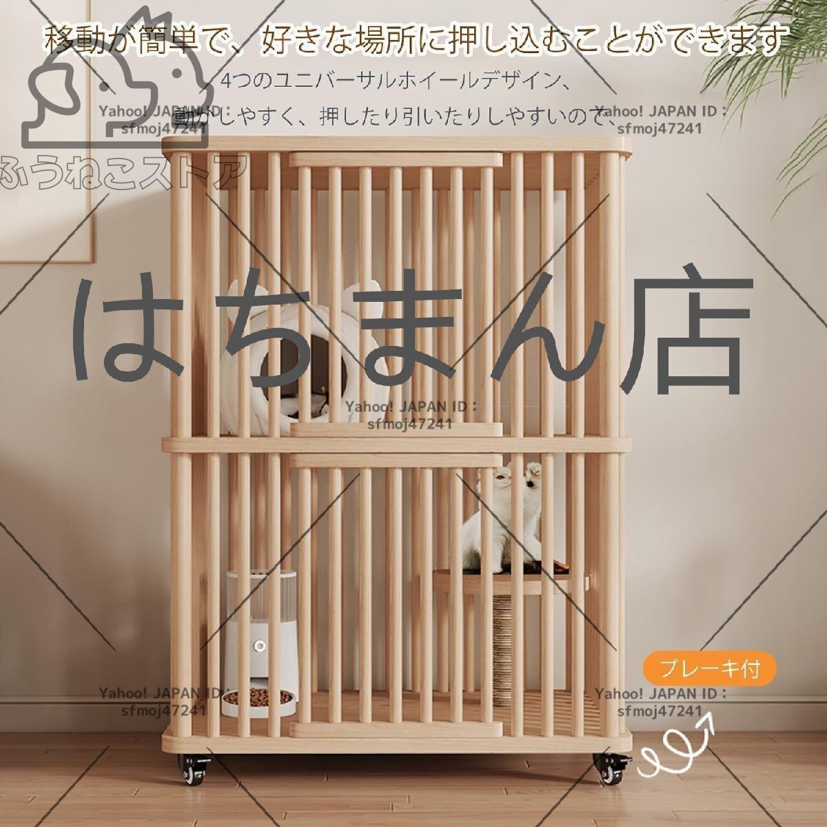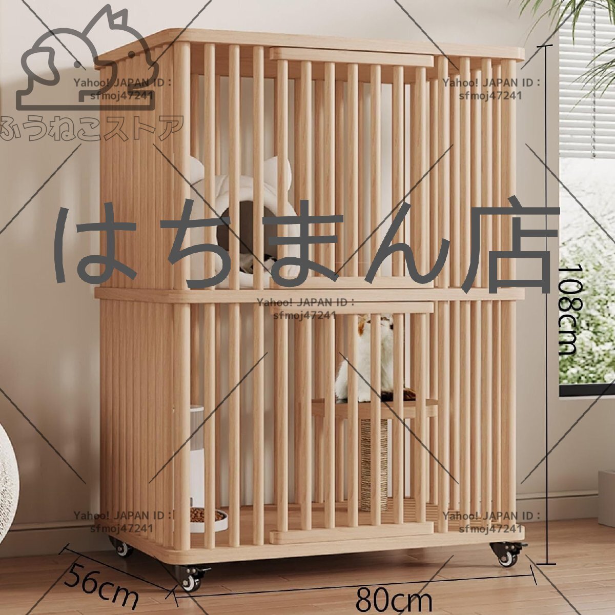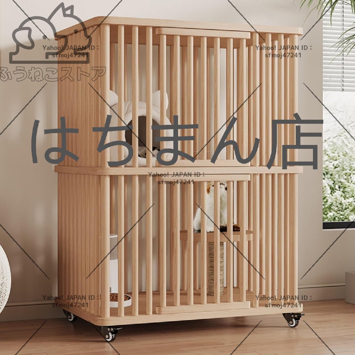 猫 ケージ 2段 猫 ケージ 子猫 ケージ 木製 ユニバーサルホイール付きの屋内猫ケージは 無垢材で作られており猫 80x56x108cm ベージュ