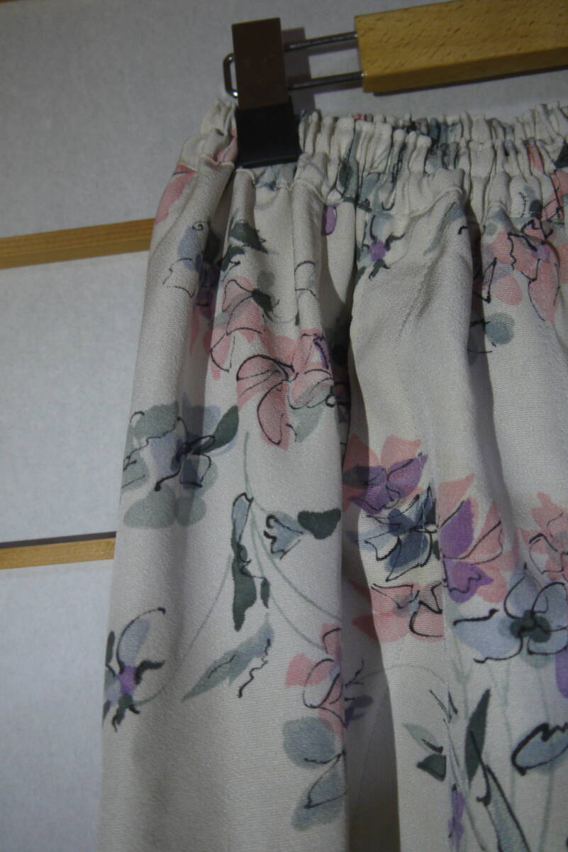 ★D&C着物リメイク・ワイドパンツ・絹・手書き花★