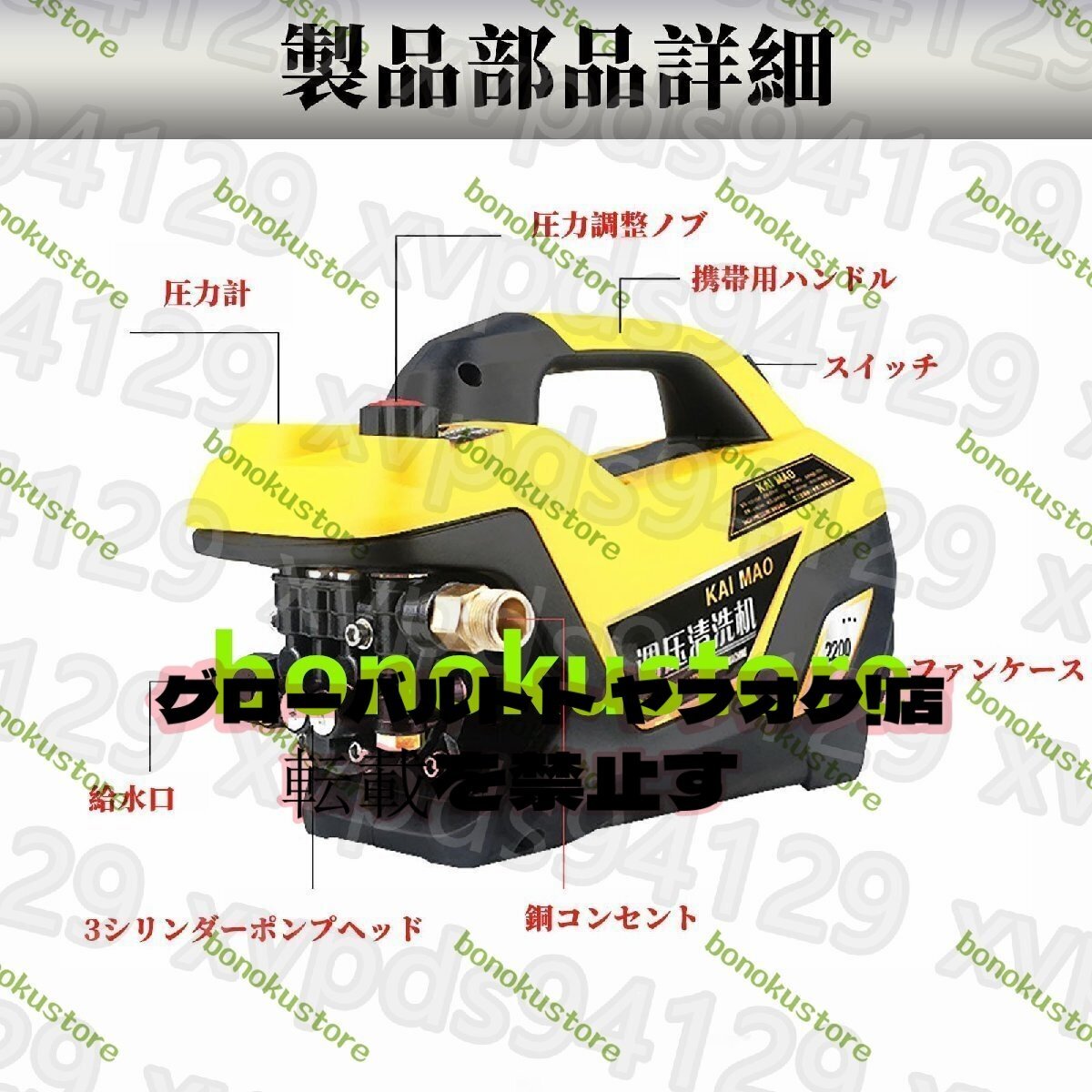【商品情報】:*名前:高圧洗浄機 洗車機 高圧洗浄ショートガン 洗車フォームガン ハンディウォッシャー 自吸式携帯ガン 高圧洗浄機 セット*材質:銅*電流: 5.2A*電圧: 110V*電源:110V*電力: 2200W*正味重量: 8.7KG*タイプ: 誘導*ドライブ: 電気*スピード: 2800*最大電圧: 110v*最大流量: 11L/分*最高圧力:15MPa*ジェットストローク: 10M*洗車機タイプ:110V洗車機*フラッシングブラシの持参の有無:はい*定格圧力範囲:≧2.5MPa、≦25MPa*高圧ポンプ伝達装置入力電力: ?10KW*適用範囲:家庭用洗車、清掃、機械設備の清掃など。