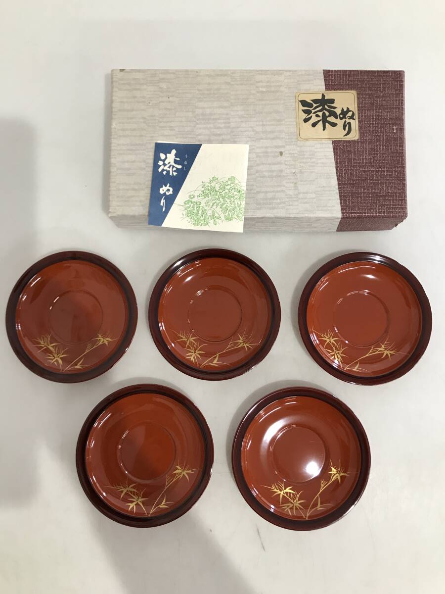 商品名 | 会津塗 茶托 宴茶托 5枚セット 竹 漆器 赤 朱塗 コースターセット 茶道具 蒔絵 箱あり |