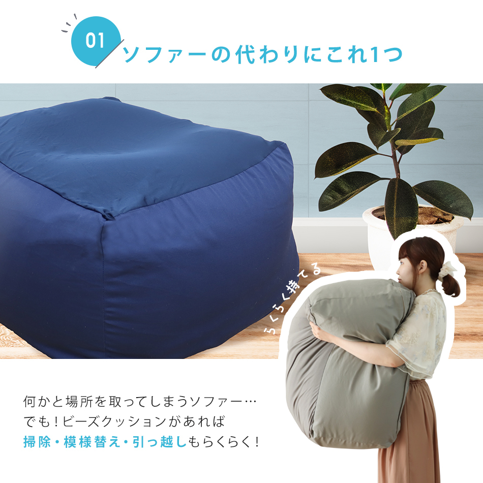 | 0.3mmのマイクロビーズが体を包み込むビーズクッション! 座ったり、うたた寝したり、足置きにしたり、いろいろな使い方が楽しめます。 どんな姿勢にも体がフィットしてくれるので、一度座ると立ち上がれなくなる心地よさです。 ビーズクッションをお使いの方は、お子さまからおじいちゃん、おばあちゃんまで様々。 さらにはワンちゃん、ネコちゃんをも虜にするフィット感です。 外カバーは取り外して洗濯機で洗えます! ビーズの調整・補充が可能です! 【商品内容】 本体 ×1 カバー ×1 【商品詳細】 カラー(カバー):グレージュ サイズ(約):幅60cm×奥行き60cm×高さ40cm 重量(約):3.4kg 素材(側面):綿100%、ポリエステル100% 素材(上面・下面):ポリエステル100% 中材:ポリスチレン(発砲ビーズ) 【注意事項】 ・商品はモニターによって色合いが異なって見える場合があります。 ・仕様/デザインは改良のため予告なく変更することがあります。 |