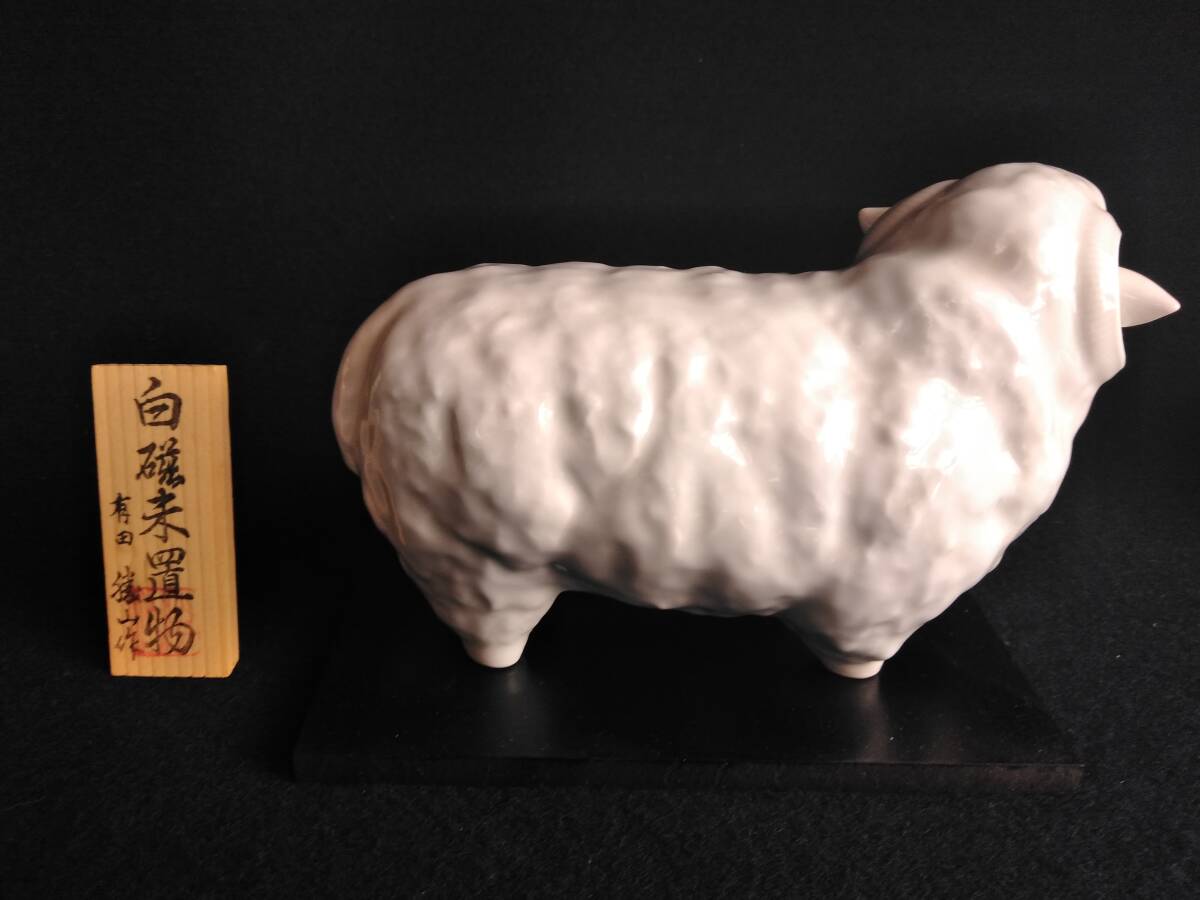 野口勝山作 有田焼 白磁 「羊」ひつじ 共箱付き