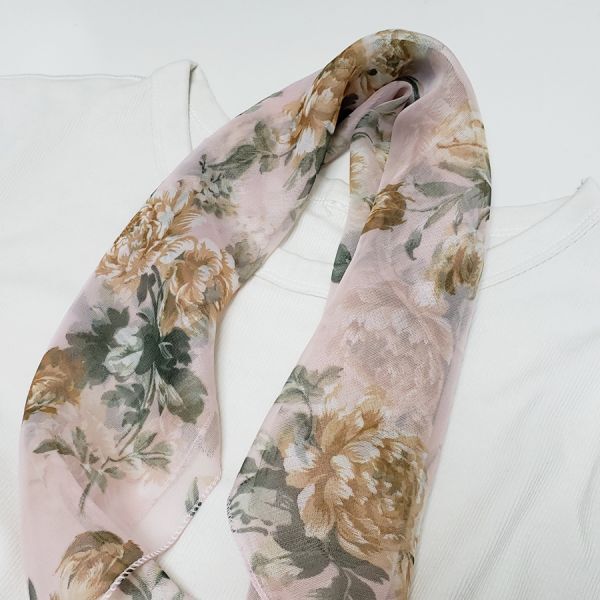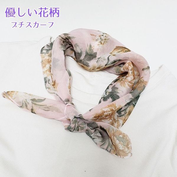 スカーフ プチスカーフ 花柄 ミニサイズ シフォンスカーフ レディース 春、夏