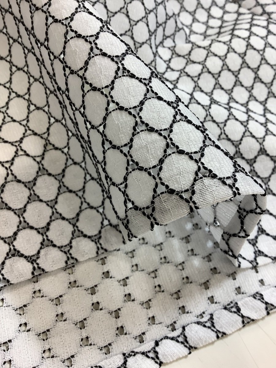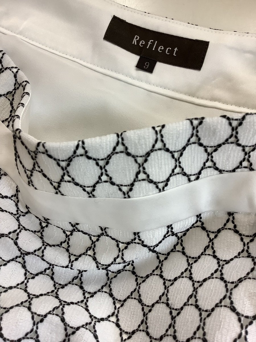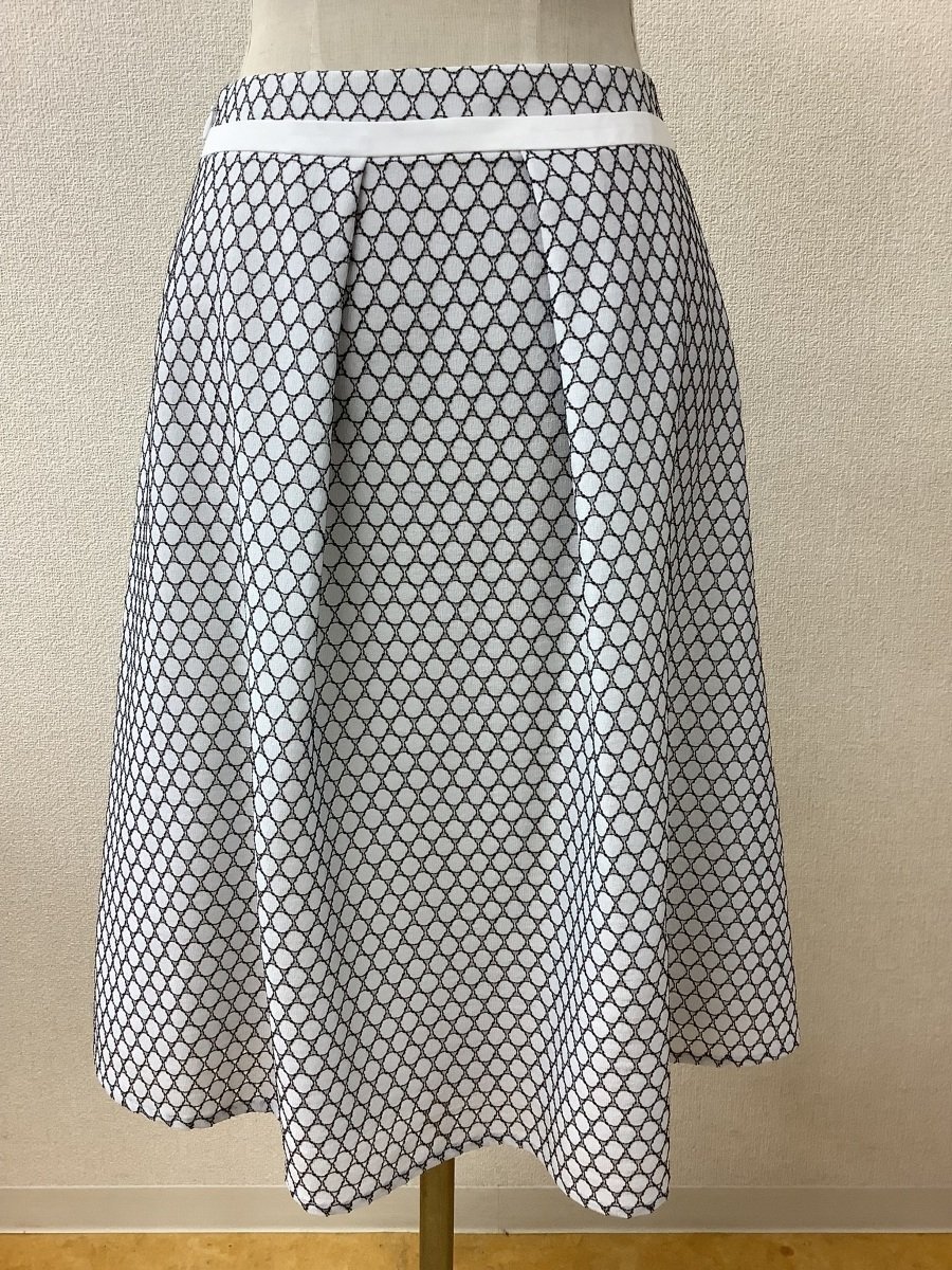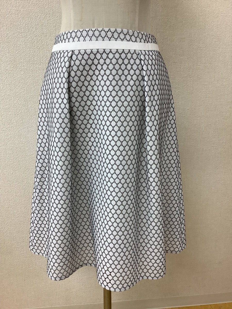 管理番号:10^136032 リフレクト タグ付き未使用 黒ふちの丸モチーフ繋ぎ生地 スカート 表示サイズ:09/M 実寸(参考)